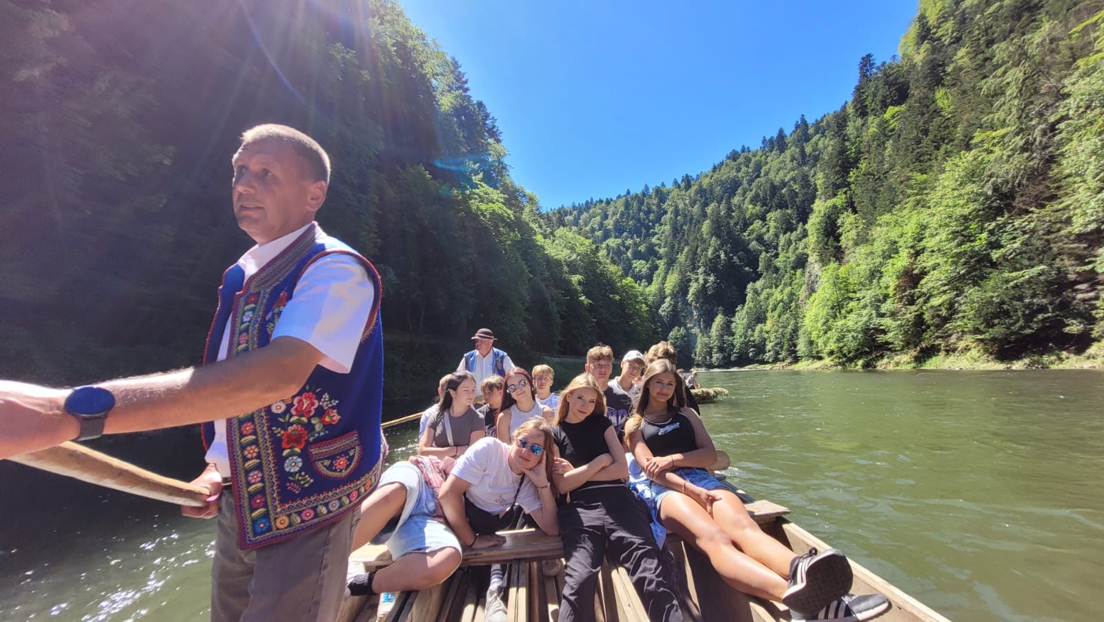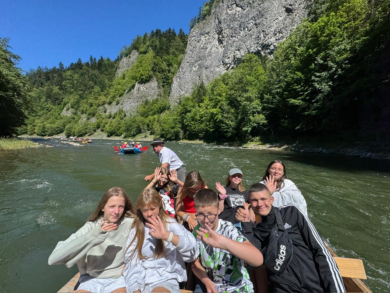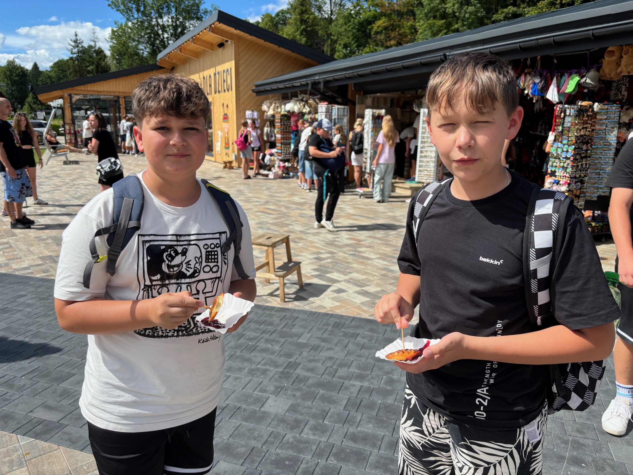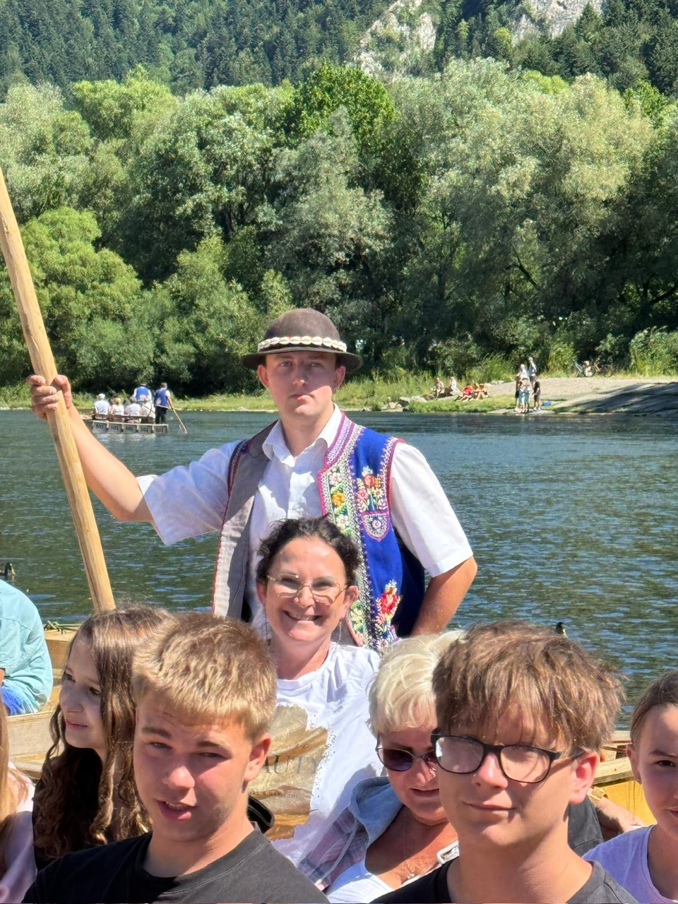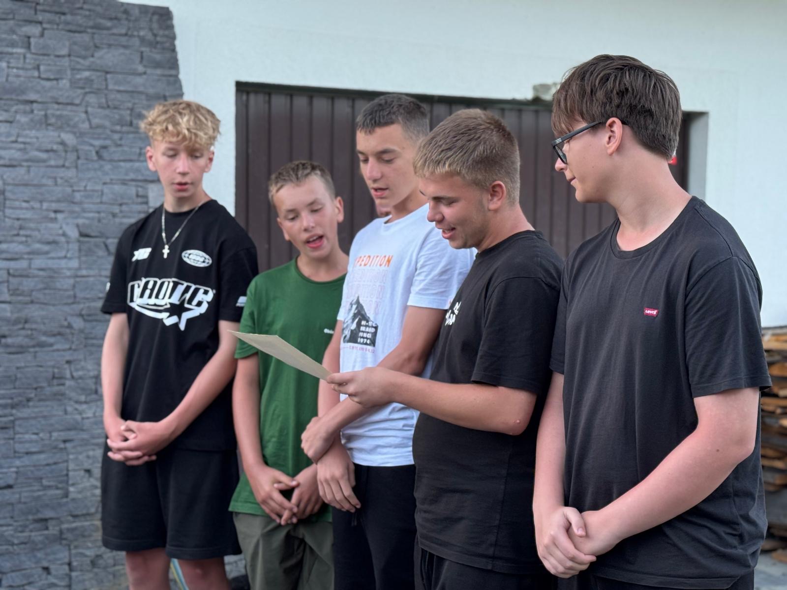 W piątym dniu z hasła ,,Sama z Samym” mieliśmy literkę ,,z” jak zdrowie. Podczas przejazdu autokarem, ksiądz Marcin tłumaczył, że zdrowie to dobry sen i dobry odpoczynek. Dojechaliśmy do Stromowców Niżnych i tam wsiedliśmy do 9 tratw na spływ Dunajcem. Podczas rejsu Flisacy opowiadali nam o różnych rzeczach np.: jak nazywają się skały i po której stronie jest granica Polski, a po której Słowacji i dużo więcej ciekawostek . Następnie kolejką wjachaliśmy na Palenicę, z której roztaczał się piękny widok na Tatry i Pieniny. Po drodze zrobiliśmy małe zakupki i wróciliśmy do ośrodka tu mieliśmy czas na krótką kąpiel w basenie i zabawę z piłką. Po obiadokolacji wzięliśmy udział w Mszy Świętej, podczas której Ksiądz zachęcał, aby rozkochać się w Bogu. Po Mszy część dzieci udała się na boisko, aby wspólnie pograć w piłkę. Zauważam, że coraz więcej dzieci chętnie bierze udział w tych zajęciach. Pozostała część dzieci uczestniczyła w warsztatach robienia labooków. Po dniu pełnym emocji każdy chętnie udał się do swoich łóżek.