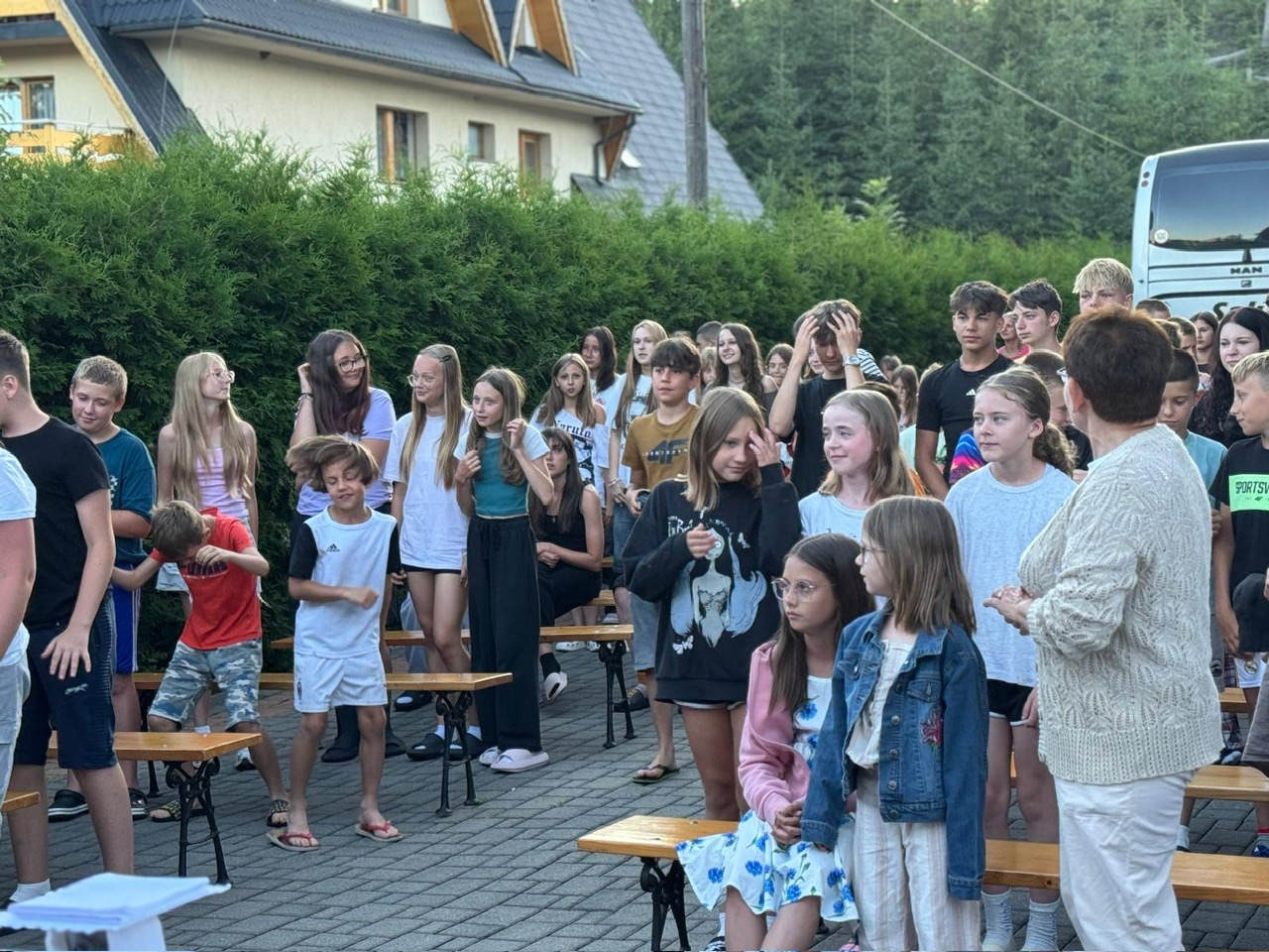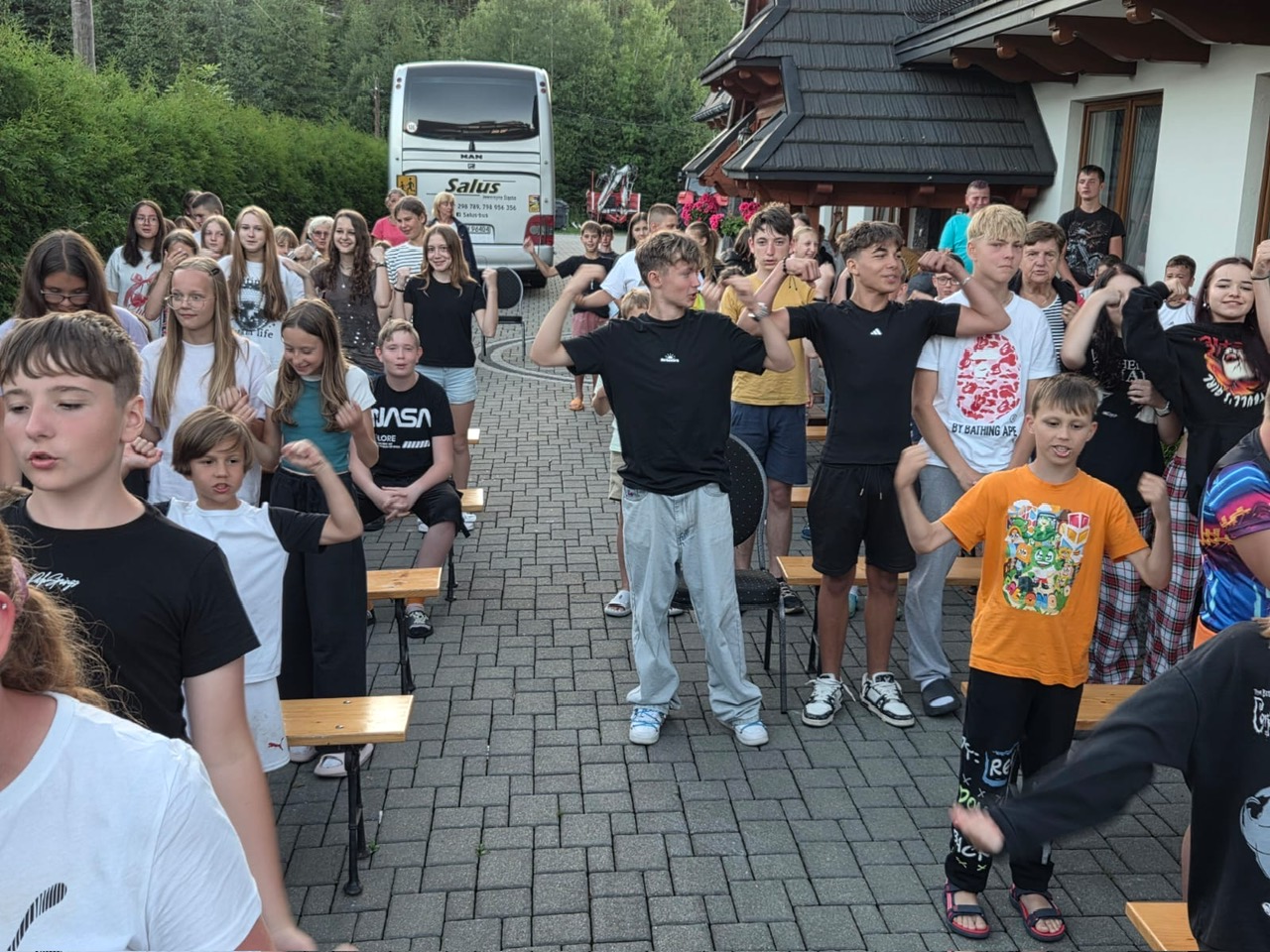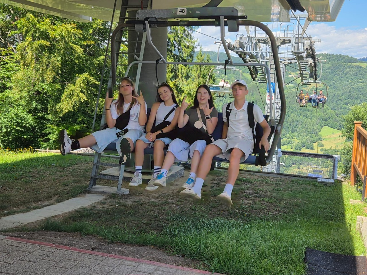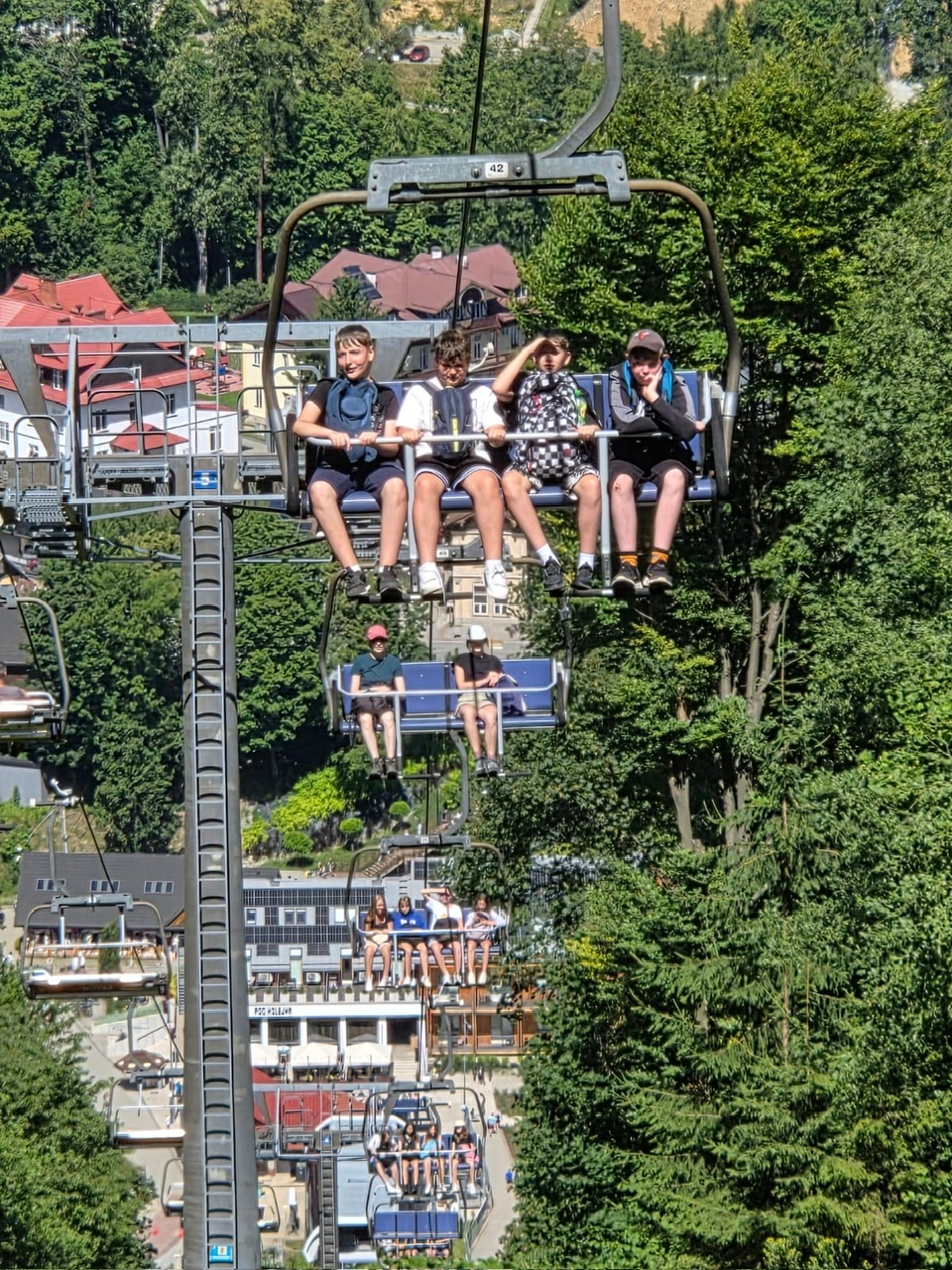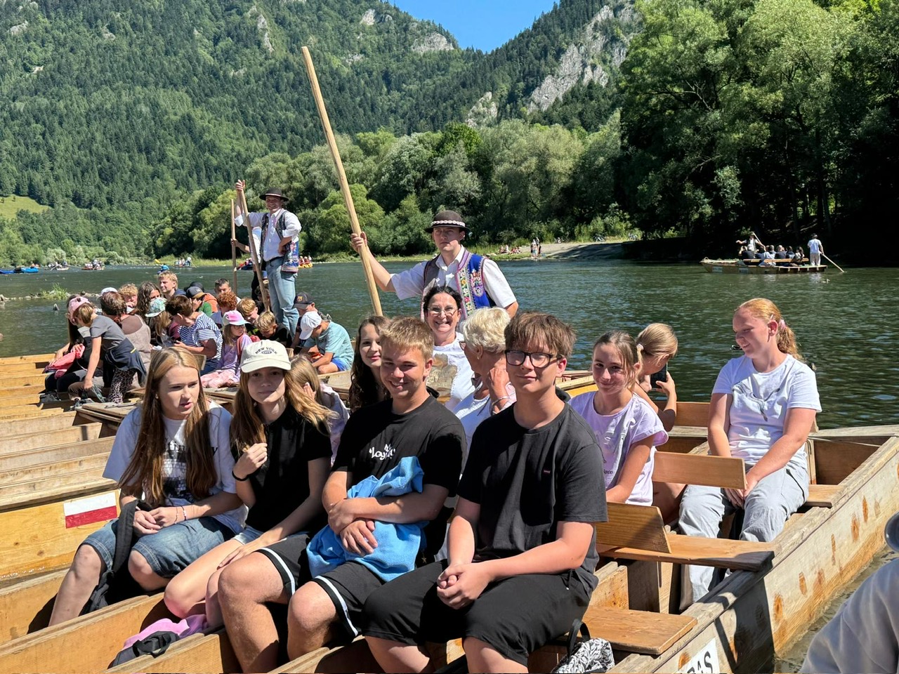 W piątym dniu z hasła ,,Sama z Samym” mieliśmy literkę ,,z” jak zdrowie. Podczas przejazdu autokarem, ksiądz Marcin tłumaczył, że zdrowie to dobry sen i dobry odpoczynek. Dojechaliśmy do Stromowców Niżnych i tam wsiedliśmy do 9 tratw na spływ Dunajcem. Podczas rejsu Flisacy opowiadali nam o różnych rzeczach np.: jak nazywają się skały i po której stronie jest granica Polski, a po której Słowacji i dużo więcej ciekawostek . Następnie kolejką wjachaliśmy na Palenicę, z której roztaczał się piękny widok na Tatry i Pieniny. Po drodze zrobiliśmy małe zakupki i wróciliśmy do ośrodka tu mieliśmy czas na krótką kąpiel w basenie i zabawę z piłką. Po obiadokolacji wzięliśmy udział w Mszy Świętej, podczas której Ksiądz zachęcał, aby rozkochać się w Bogu. Po Mszy część dzieci udała się na boisko, aby wspólnie pograć w piłkę. Zauważam, że coraz więcej dzieci chętnie bierze udział w tych zajęciach. Pozostała część dzieci uczestniczyła w warsztatach robienia labooków. Po dniu pełnym emocji każdy chętnie udał się do swoich łóżek.
