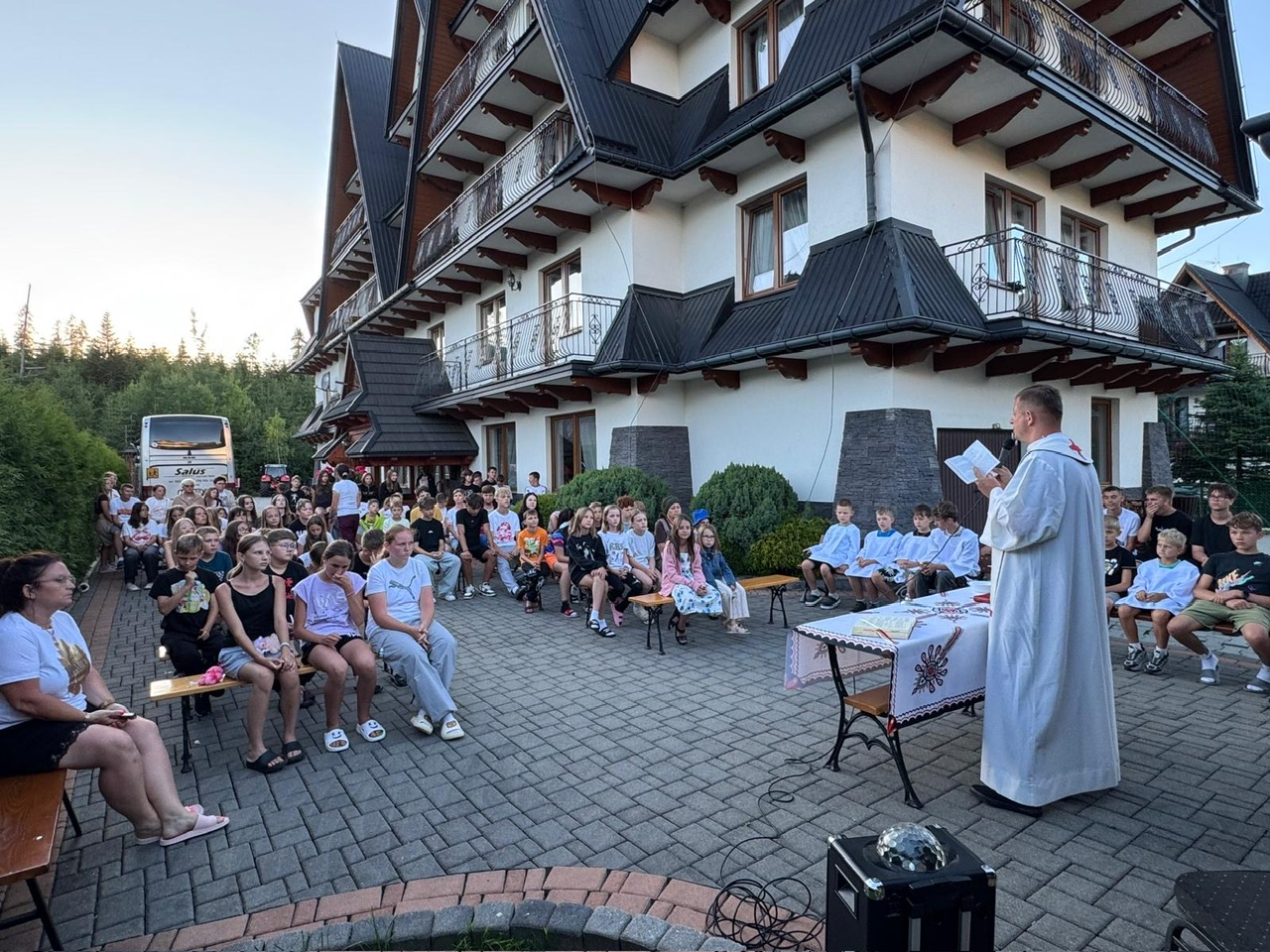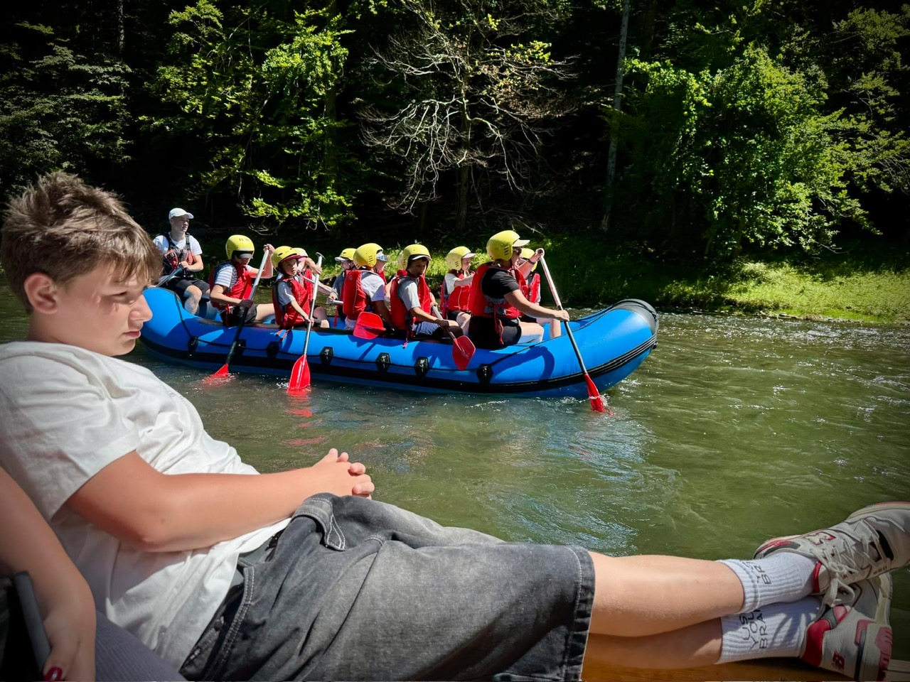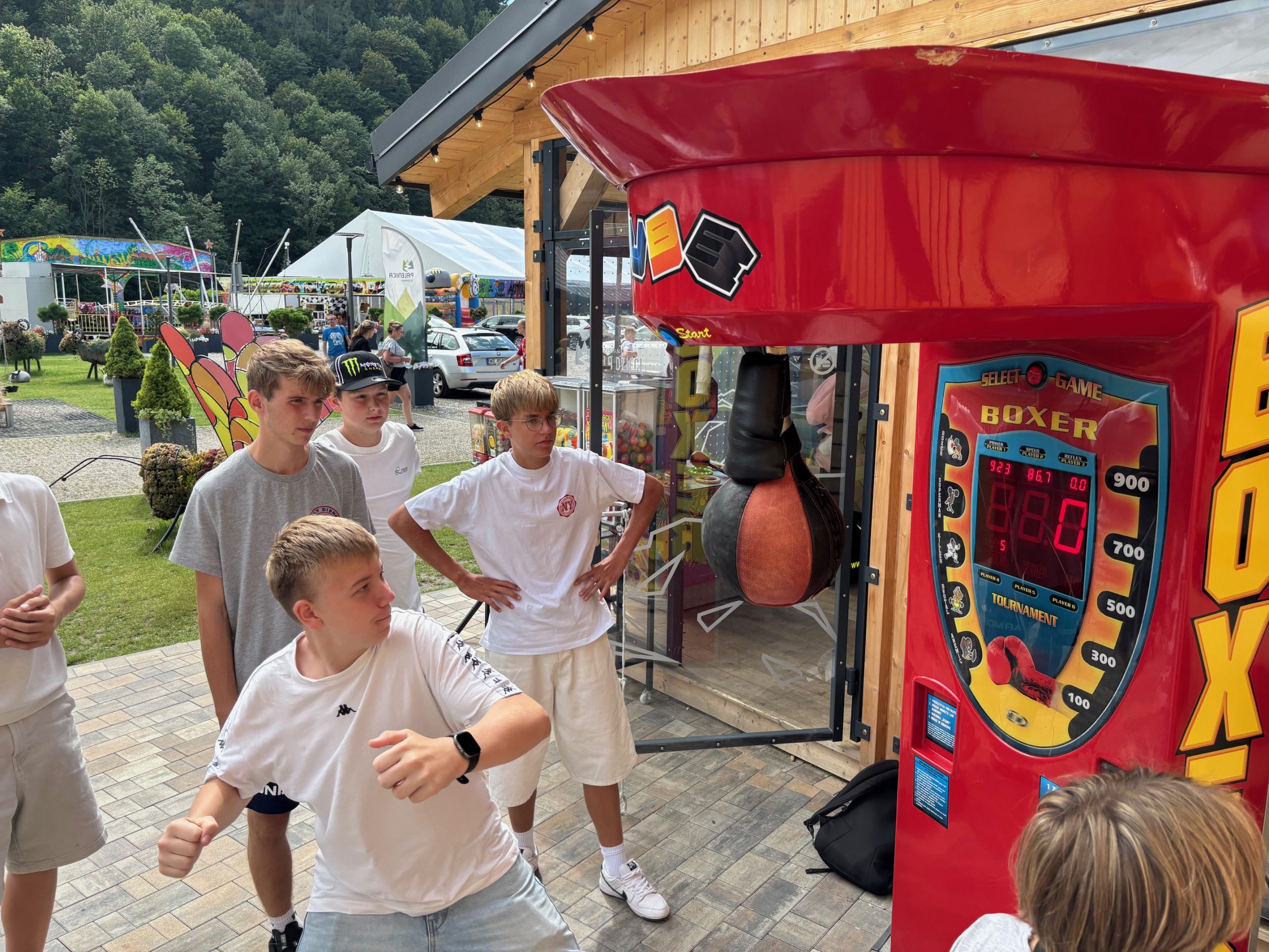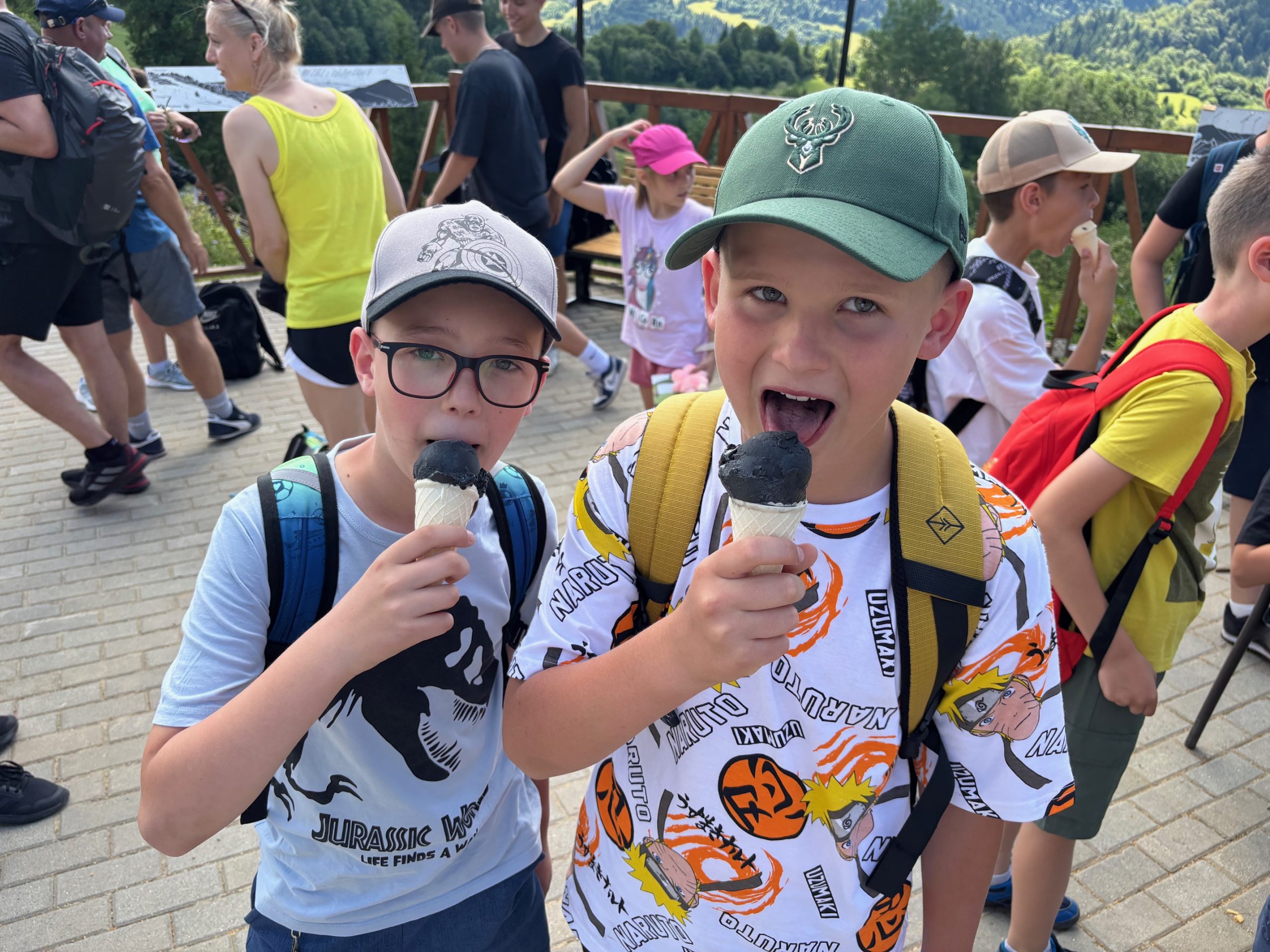 W piątym dniu z hasła ,,Sama z Samym” mieliśmy literkę ,,z” jak zdrowie. Podczas przejazdu autokarem, ksiądz Marcin tłumaczył, że zdrowie to dobry sen i dobry odpoczynek. Dojechaliśmy do Stromowców Niżnych i tam wsiedliśmy do 9 tratw na spływ Dunajcem. Podczas rejsu Flisacy opowiadali nam o różnych rzeczach np.: jak nazywają się skały i po której stronie jest granica Polski, a po której Słowacji i dużo więcej ciekawostek . Następnie kolejką wjachaliśmy na Palenicę, z której roztaczał się piękny widok na Tatry i Pieniny. Po drodze zrobiliśmy małe zakupki i wróciliśmy do ośrodka tu mieliśmy czas na krótką kąpiel w basenie i zabawę z piłką. Po obiadokolacji wzięliśmy udział w Mszy Świętej, podczas której Ksiądz zachęcał, aby rozkochać się w Bogu. Po Mszy część dzieci udała się na boisko, aby wspólnie pograć w piłkę. Zauważam, że coraz więcej dzieci chętnie bierze udział w tych zajęciach. Pozostała część dzieci uczestniczyła w warsztatach robienia labooków. Po dniu pełnym emocji każdy chętnie udał się do swoich łóżek.