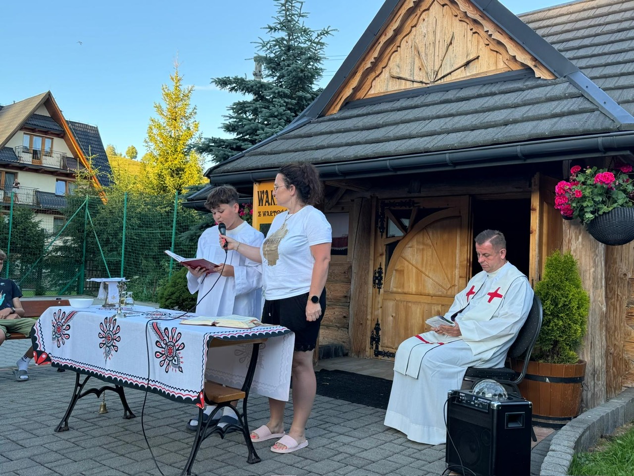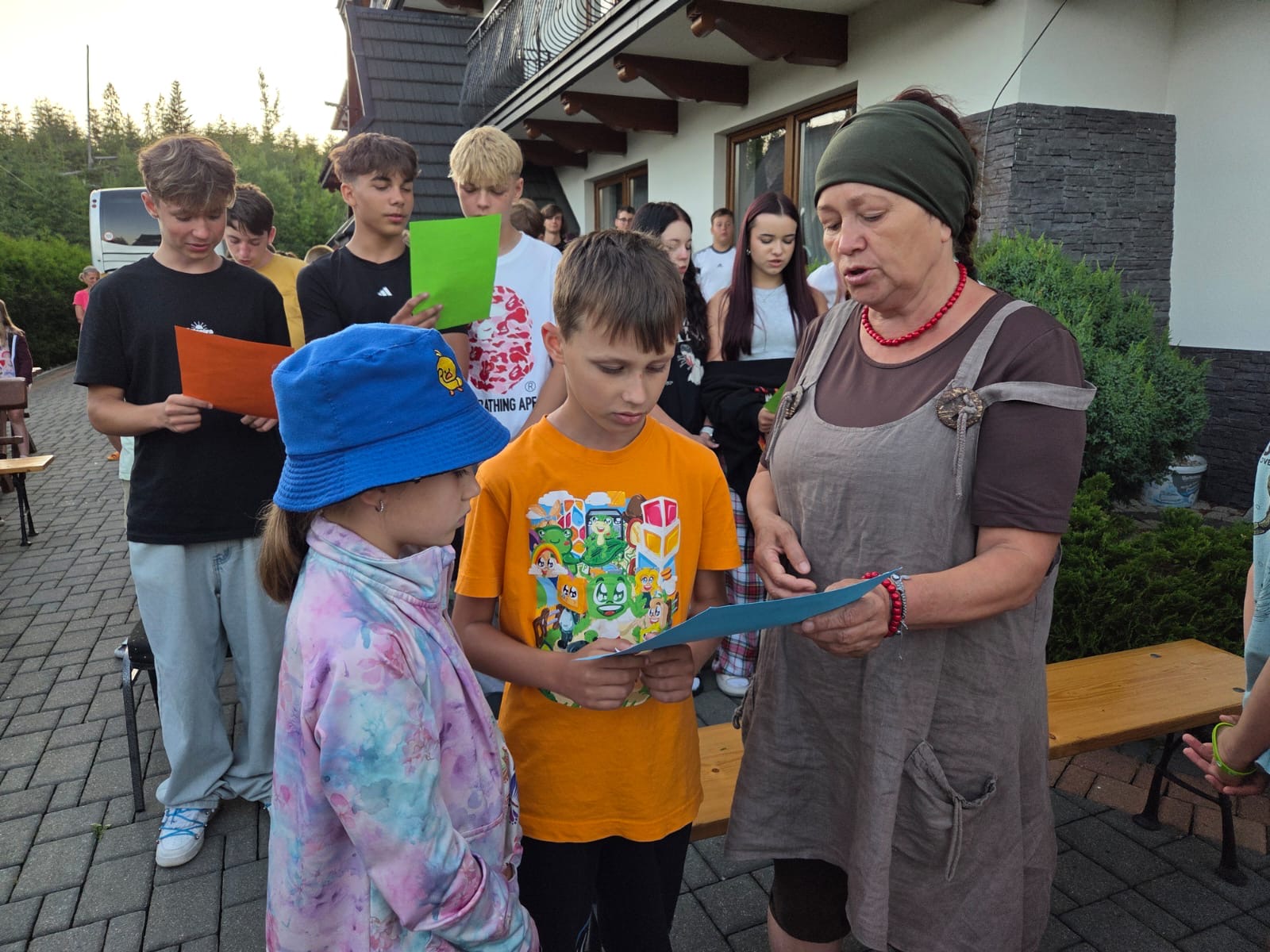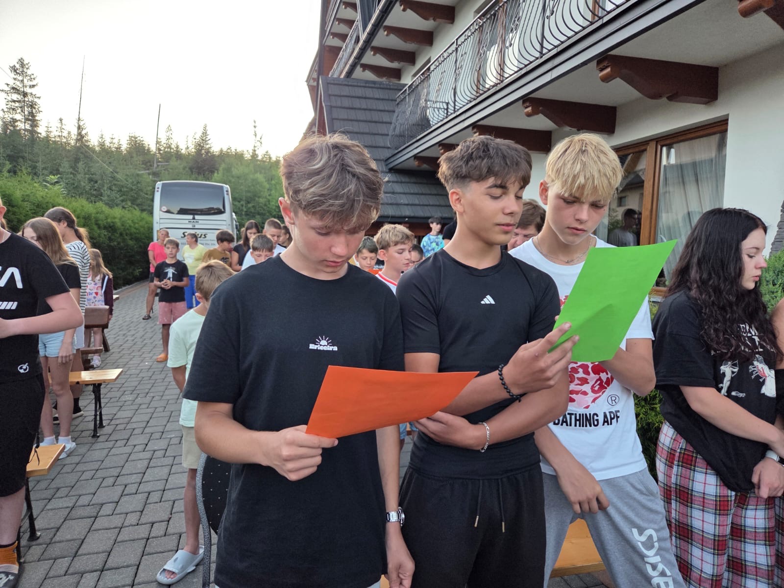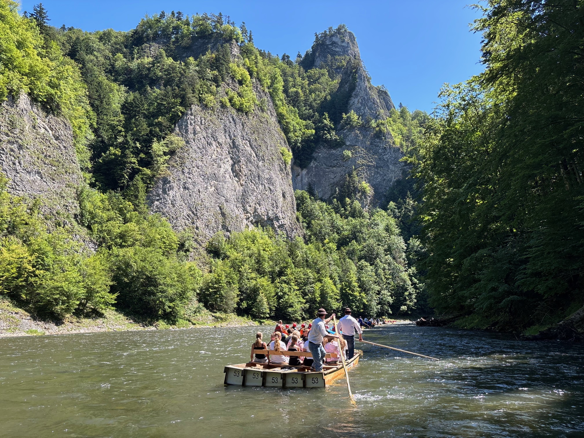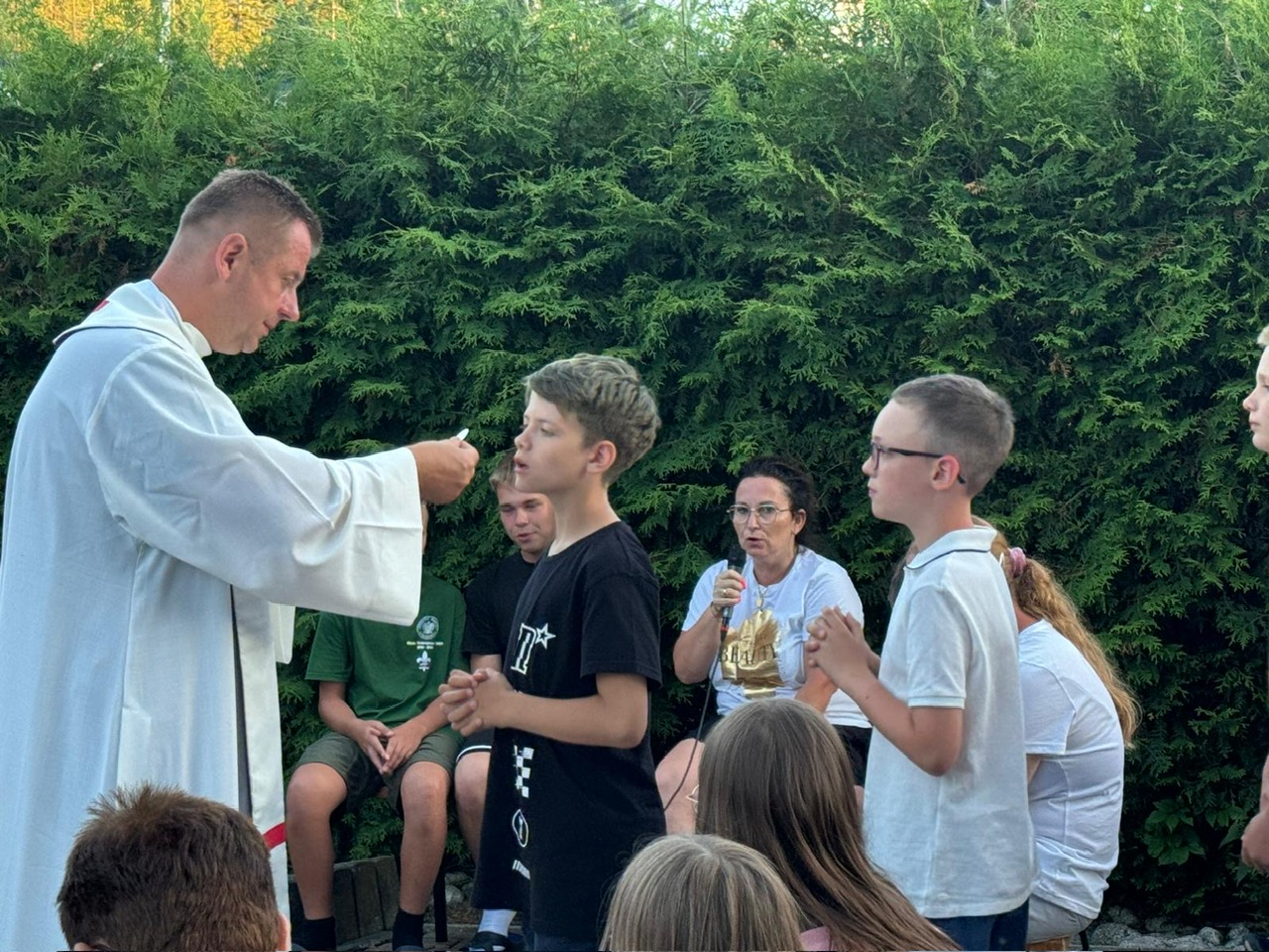 W piątym dniu z hasła ,,Sama z Samym” mieliśmy literkę ,,z” jak zdrowie. Podczas przejazdu autokarem, ksiądz Marcin tłumaczył, że zdrowie to dobry sen i dobry odpoczynek. Dojechaliśmy do Stromowców Niżnych i tam wsiedliśmy do 9 tratw na spływ Dunajcem. Podczas rejsu Flisacy opowiadali nam o różnych rzeczach np.: jak nazywają się skały i po której stronie jest granica Polski, a po której Słowacji i dużo więcej ciekawostek . Następnie kolejką wjachaliśmy na Palenicę, z której roztaczał się piękny widok na Tatry i Pieniny. Po drodze zrobiliśmy małe zakupki i wróciliśmy do ośrodka tu mieliśmy czas na krótką kąpiel w basenie i zabawę z piłką. Po obiadokolacji wzięliśmy udział w Mszy Świętej, podczas której Ksiądz zachęcał, aby rozkochać się w Bogu. Po Mszy część dzieci udała się na boisko, aby wspólnie pograć w piłkę. Zauważam, że coraz więcej dzieci chętnie bierze udział w tych zajęciach. Pozostała część dzieci uczestniczyła w warsztatach robienia labooków. Po dniu pełnym emocji każdy chętnie udał się do swoich łóżek.