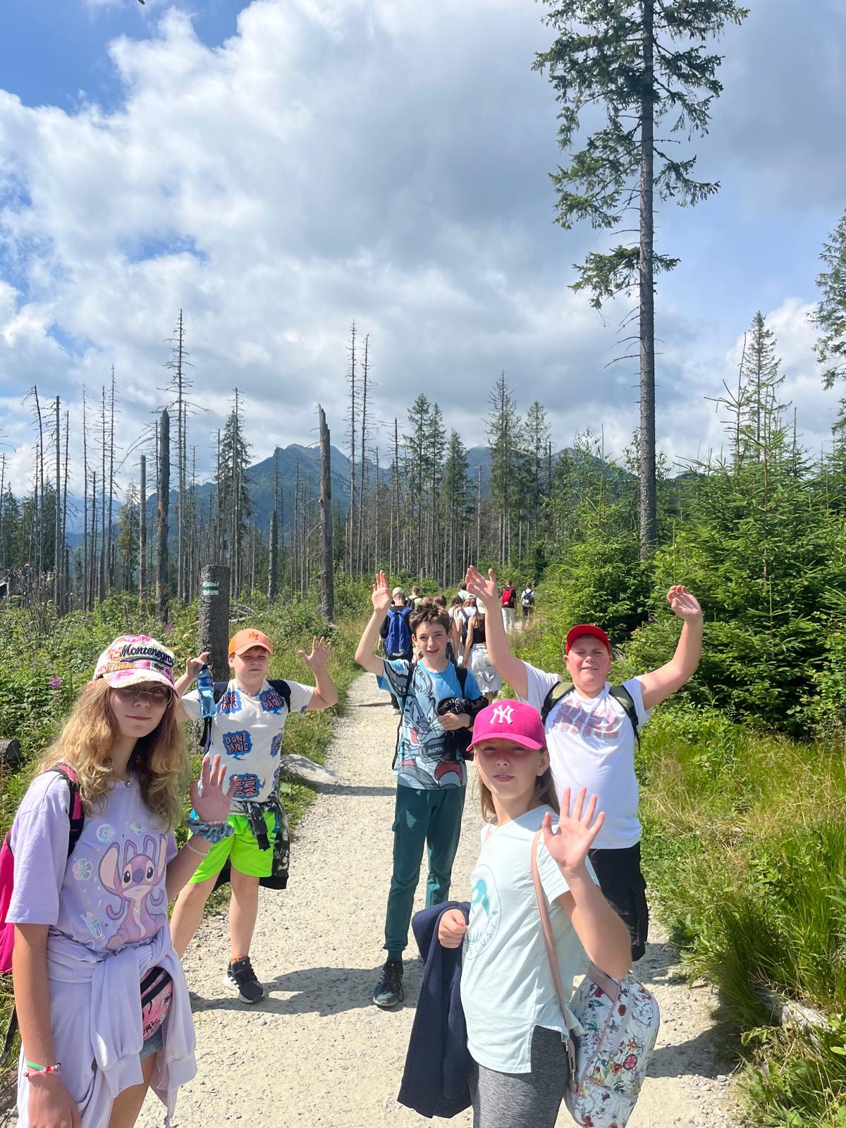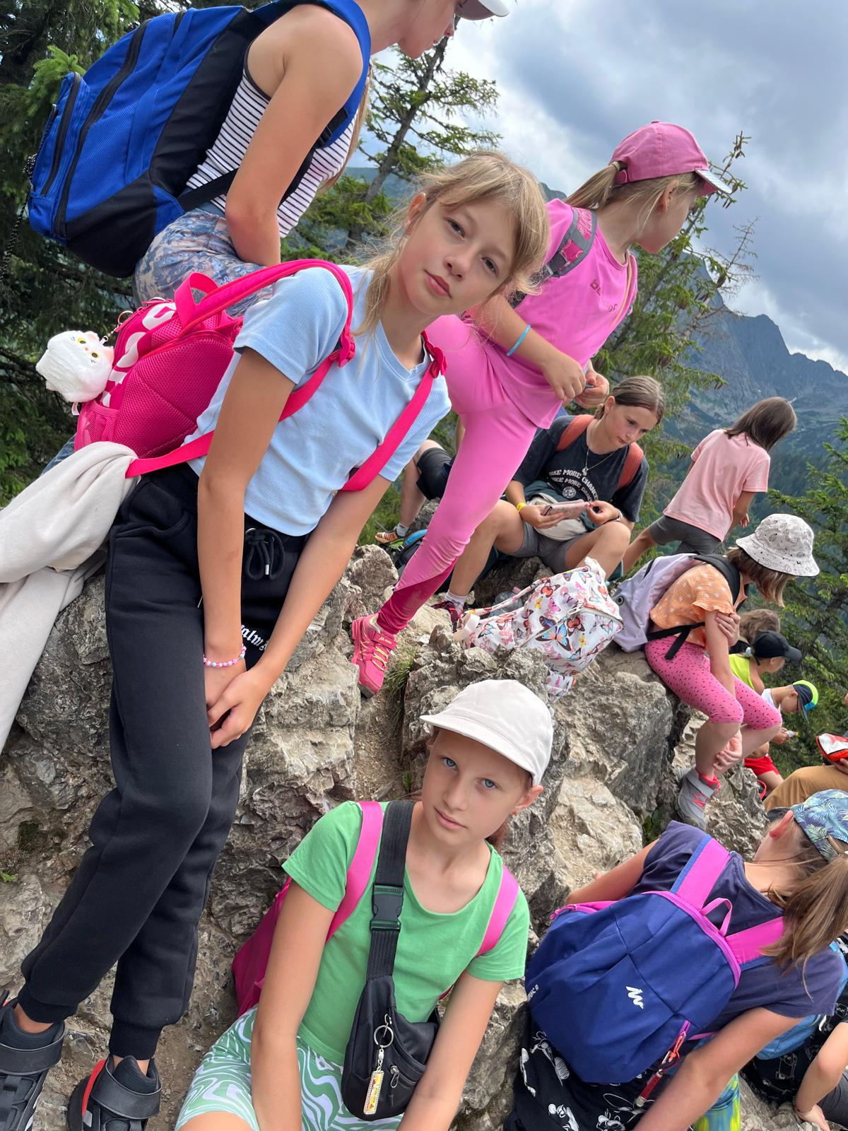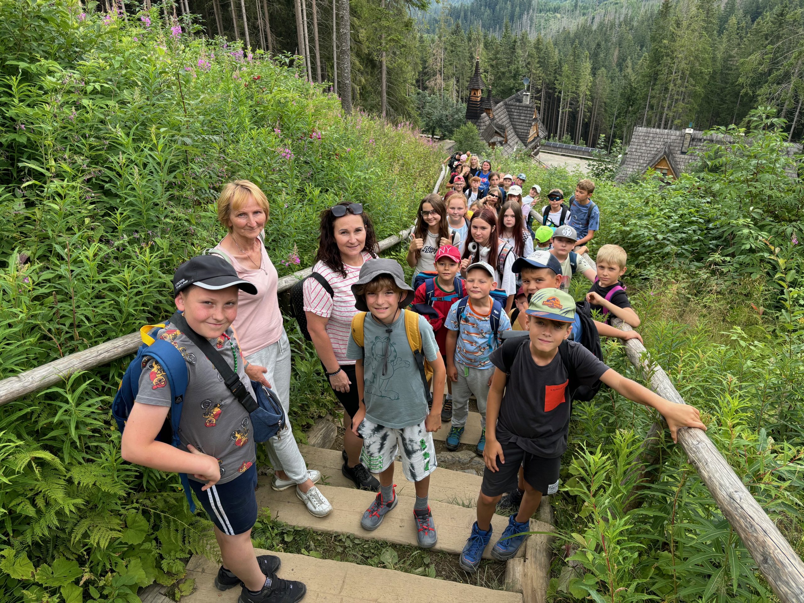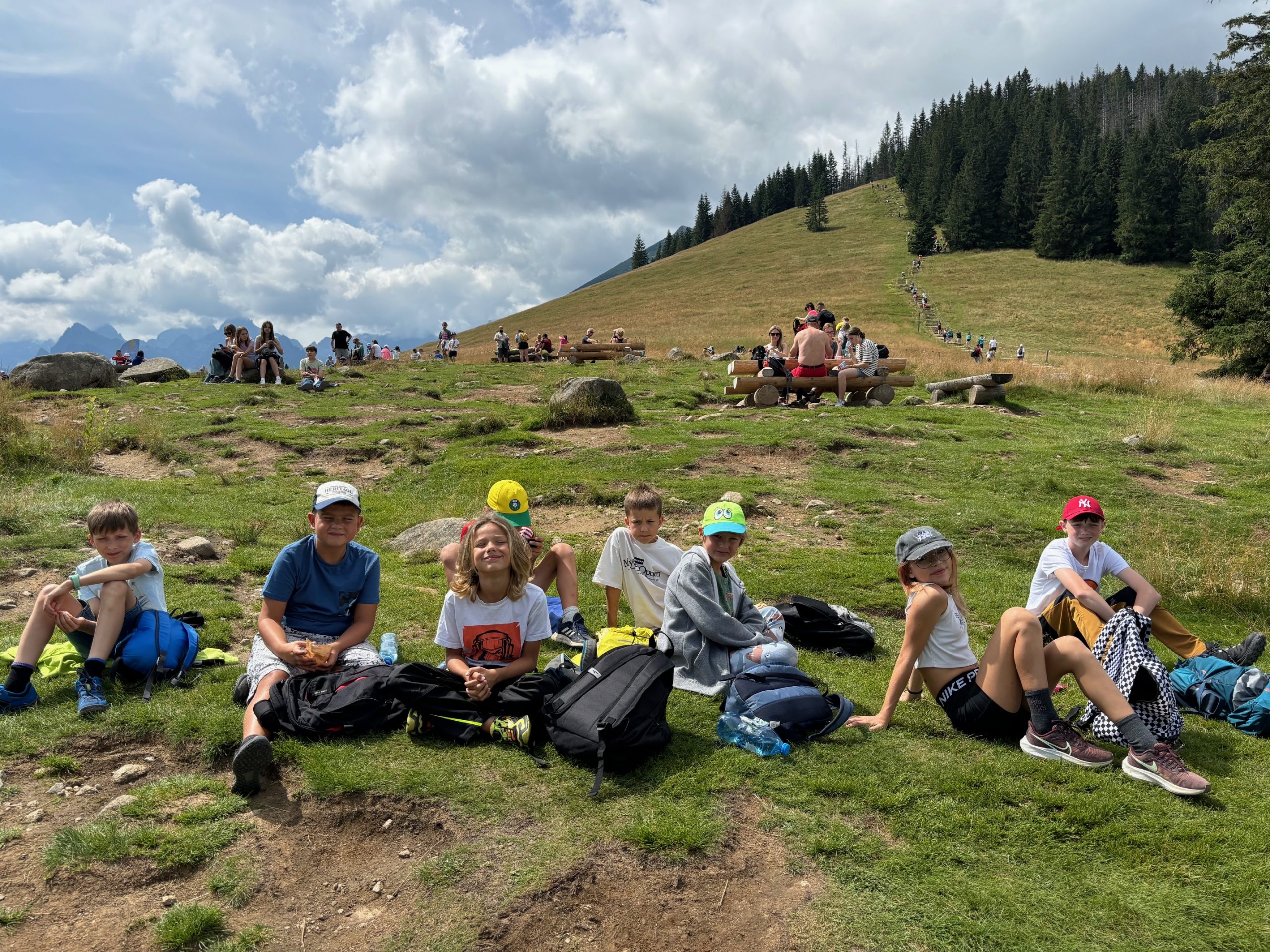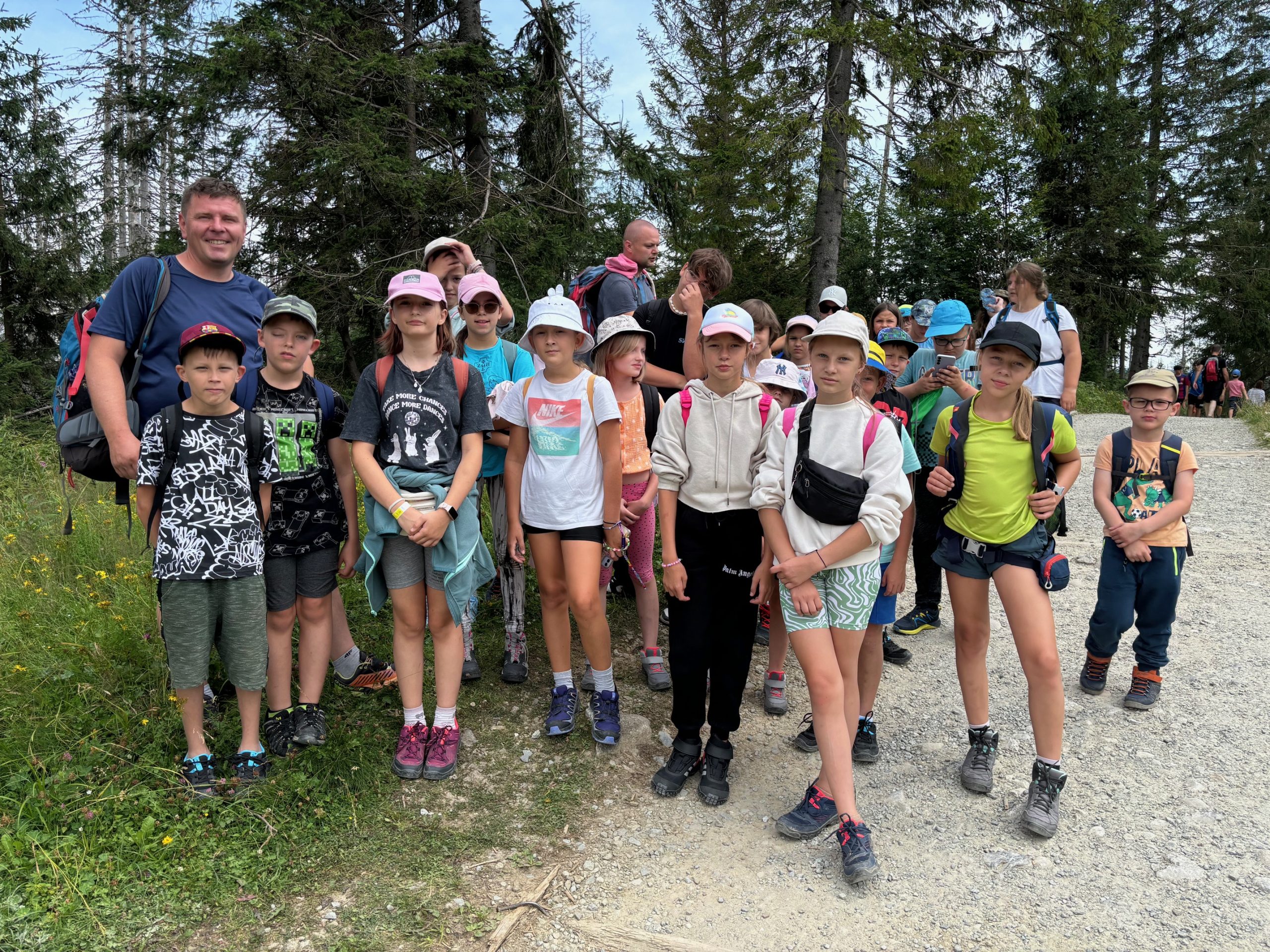 Za nami już połowa obozu. Mnóstwo atrakcji, moc radości i nowe znajomości. A dziś… kolejny punkt wakacyjnego programu został zrealizowany! Zdobyliśmy szczyt góry o nazwie Gęsia Szyja. To była nasza pierwsza wycieczka, dzięki której mogliśmy sprawdzić swoją wytrzymałość i wiedzę na temat pieszych wędrówek. Do celu prowadzili nas przewodnicy Tatrzańskiego Parku Narodowego. Na szlaku dbaliśmy o odpowiednie nawodnienie oraz odpoczynek. Podziwialiśmy wspaniały krajobraz Tatr z Rusinowej Polany, a potem z samego szczytu góry. Dla takich widoków warto było się trudzić. W bacówce degustowaliśmy oscypki, bundz i żętycę. W drodze powrotnej zeszliśmy na mszę świętą do malowniczego Sanktuarium pw.Matki Bożej Jaworzyńskiej Królowej Tatr na Wiktorówkach. Ksiądz Marcin w kazaniu nawiązał do kolejnej litery hasła: „G” jak GODNOŚĆ dziecka Bożego. Po trudach wędrówki, z radością zjedliśmy obiadokolację. Późnym popołudniem bawiliśmy się na boisku i w basenie na terenie ośrodka. Część uczestników, razem z wychowawcami, wybrała się na spacer po okolicy połączony z zakupami. Jutro czekają na nas kolejne atrakcje. Trzeba zbierać nowe siły.