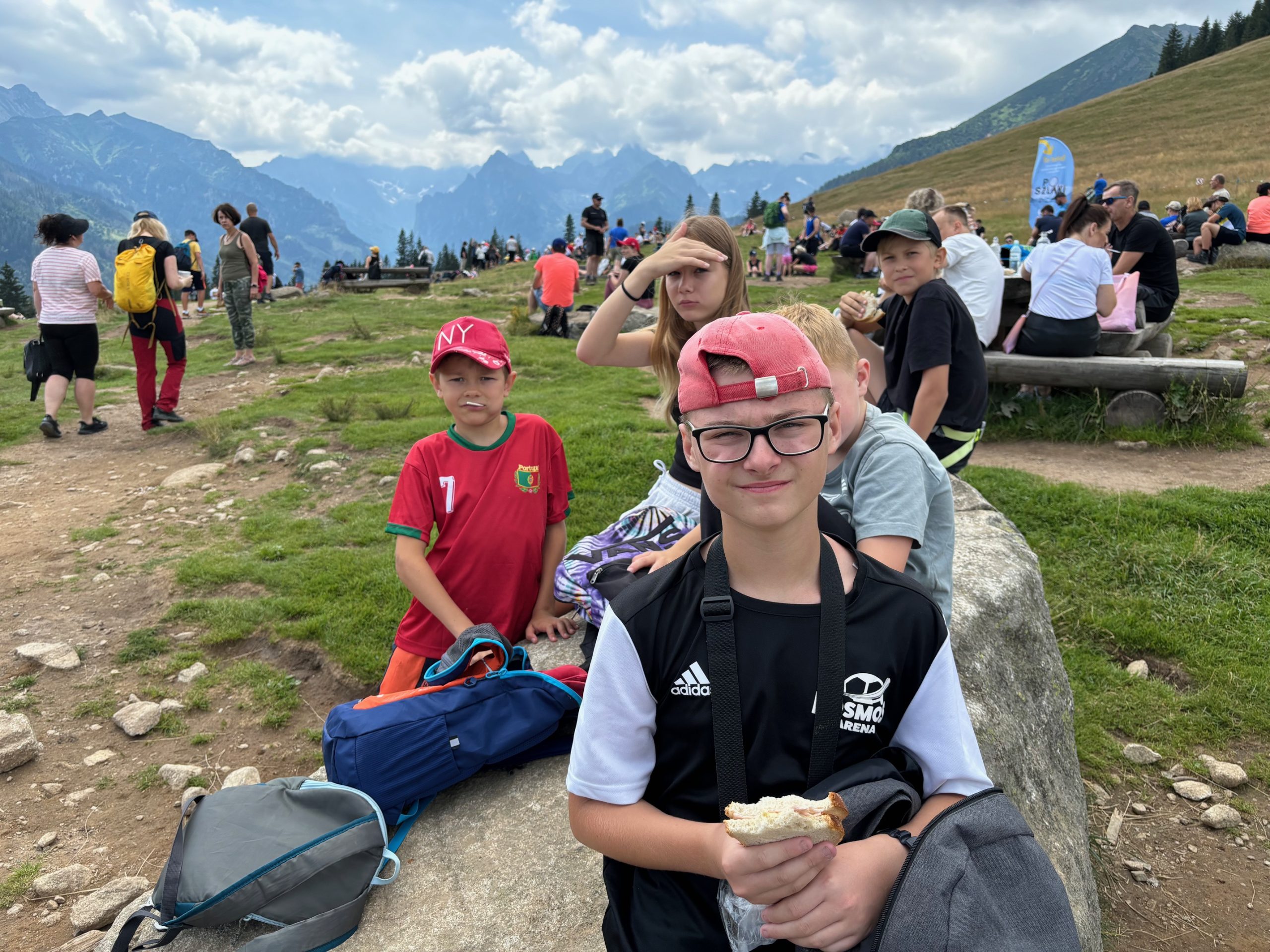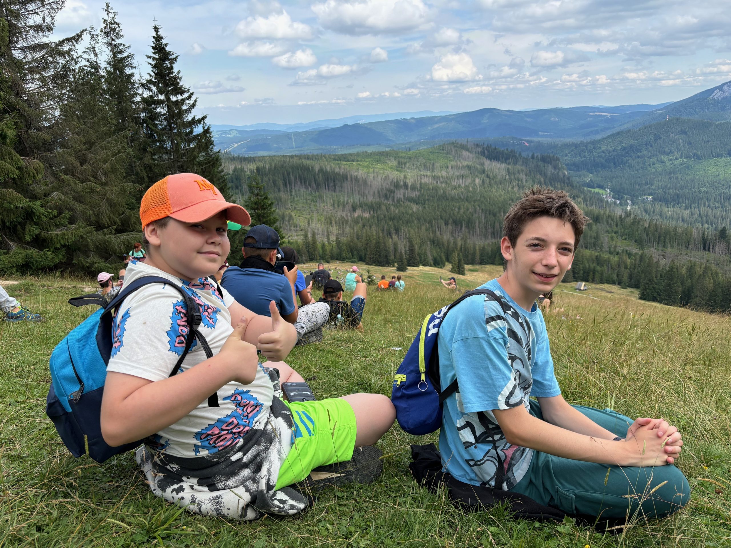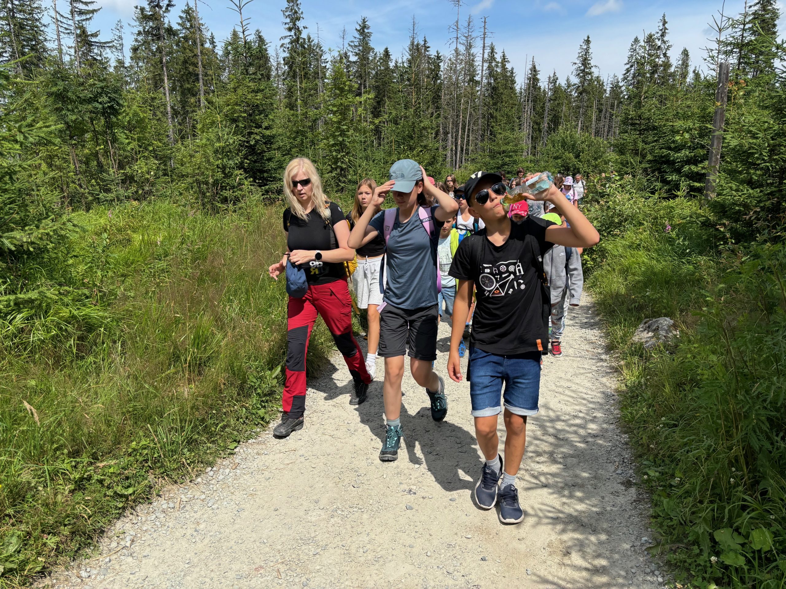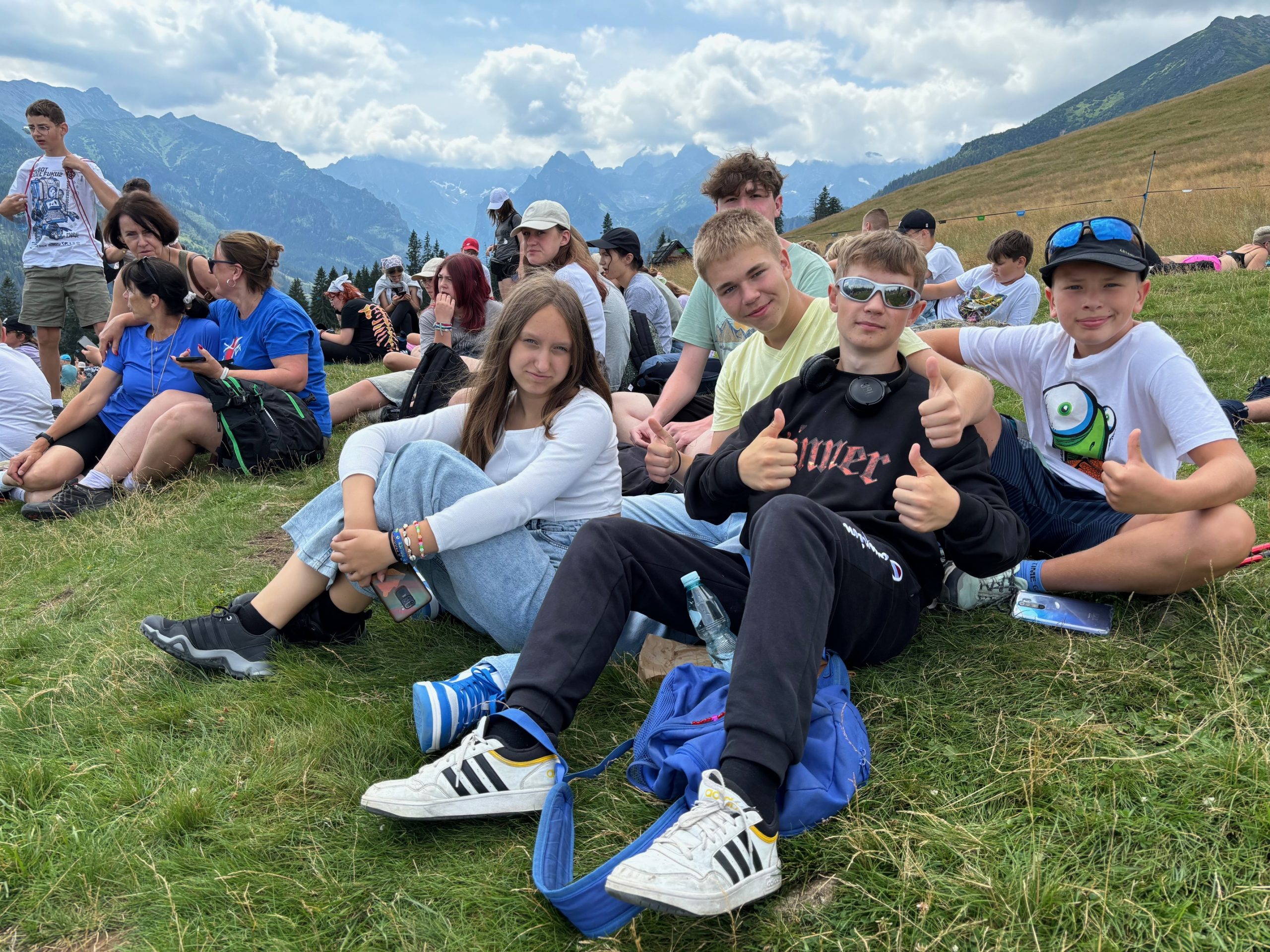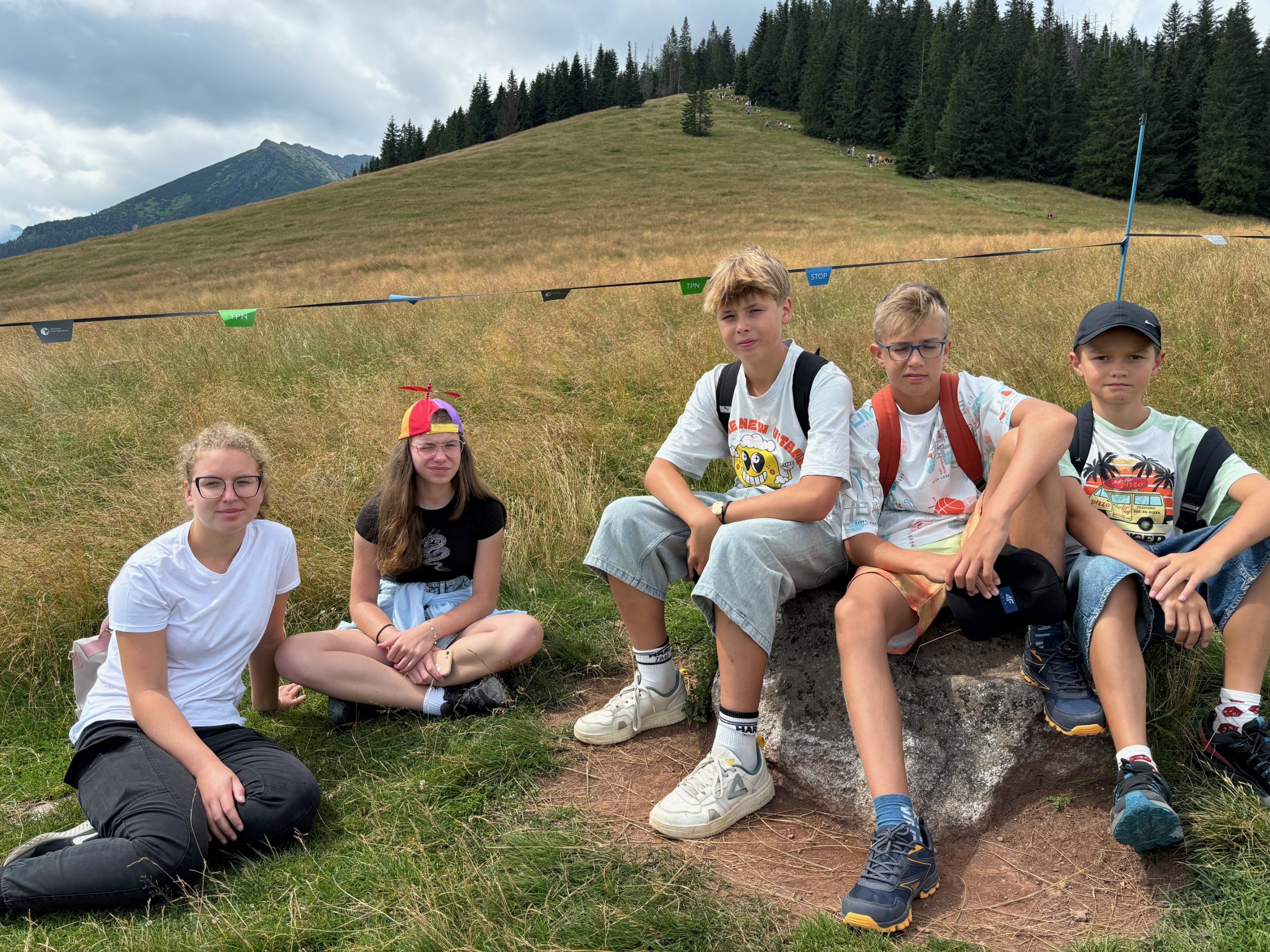 Za nami już połowa obozu. Mnóstwo atrakcji, moc radości i nowe znajomości. A dziś… kolejny punkt wakacyjnego programu został zrealizowany! Zdobyliśmy szczyt góry o nazwie Gęsia Szyja. To była nasza pierwsza wycieczka, dzięki której mogliśmy sprawdzić swoją wytrzymałość i wiedzę na temat pieszych wędrówek. Do celu prowadzili nas przewodnicy Tatrzańskiego Parku Narodowego. Na szlaku dbaliśmy o odpowiednie nawodnienie oraz odpoczynek. Podziwialiśmy wspaniały krajobraz Tatr z Rusinowej Polany, a potem z samego szczytu góry. Dla takich widoków warto było się trudzić. W bacówce degustowaliśmy oscypki, bundz i żętycę. W drodze powrotnej zeszliśmy na mszę świętą do malowniczego Sanktuarium pw.Matki Bożej Jaworzyńskiej Królowej Tatr na Wiktorówkach. Ksiądz Marcin w kazaniu nawiązał do kolejnej litery hasła: „G” jak GODNOŚĆ dziecka Bożego. Po trudach wędrówki, z radością zjedliśmy obiadokolację. Późnym popołudniem bawiliśmy się na boisku i w basenie na terenie ośrodka. Część uczestników, razem z wychowawcami, wybrała się na spacer po okolicy połączony z zakupami. Jutro czekają na nas kolejne atrakcje. Trzeba zbierać nowe siły.