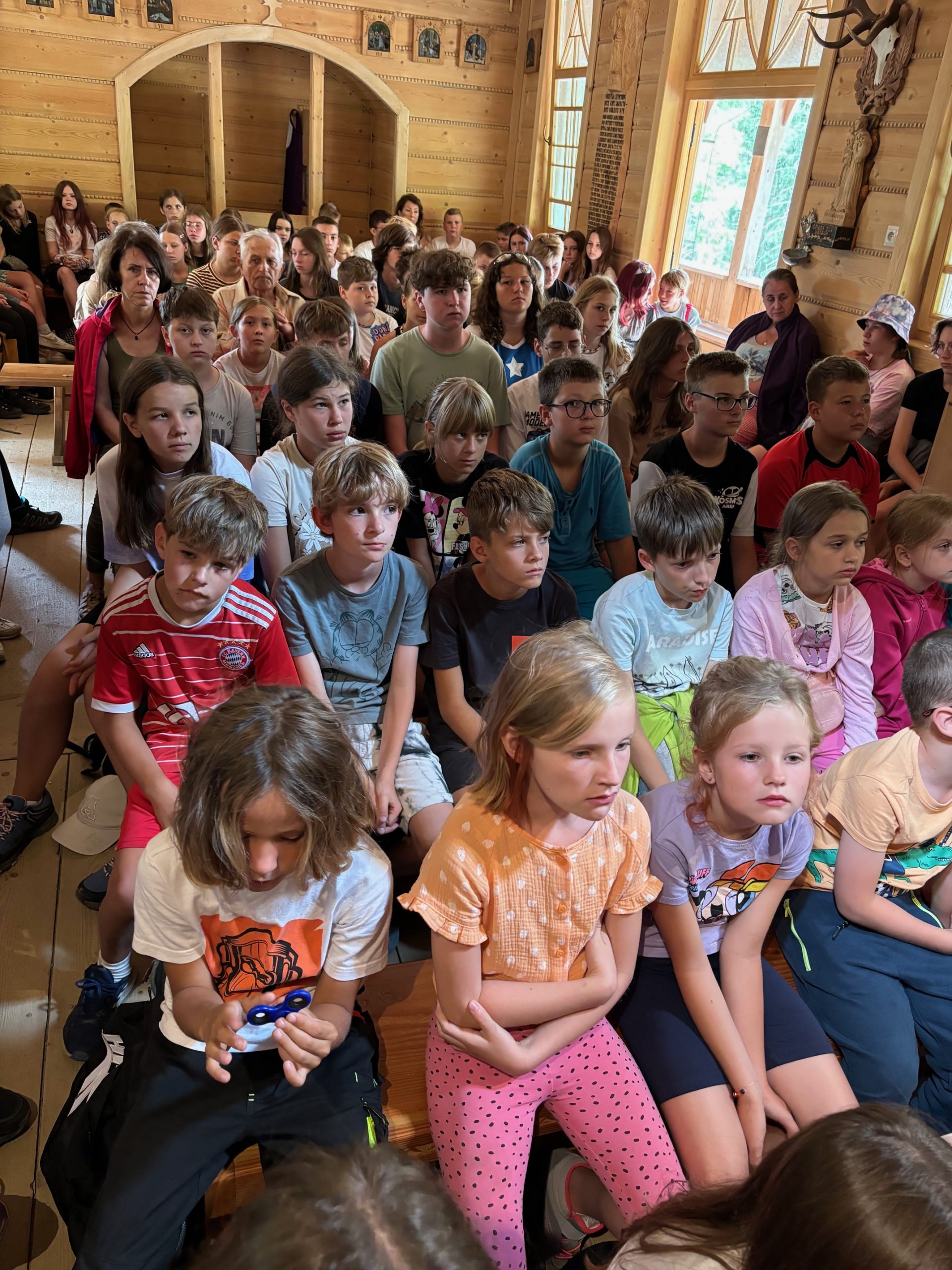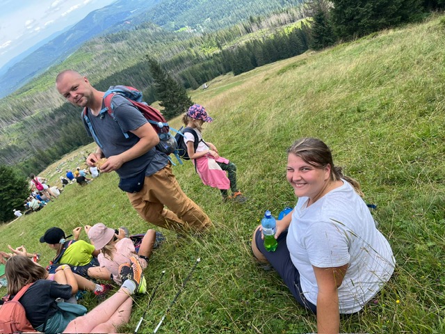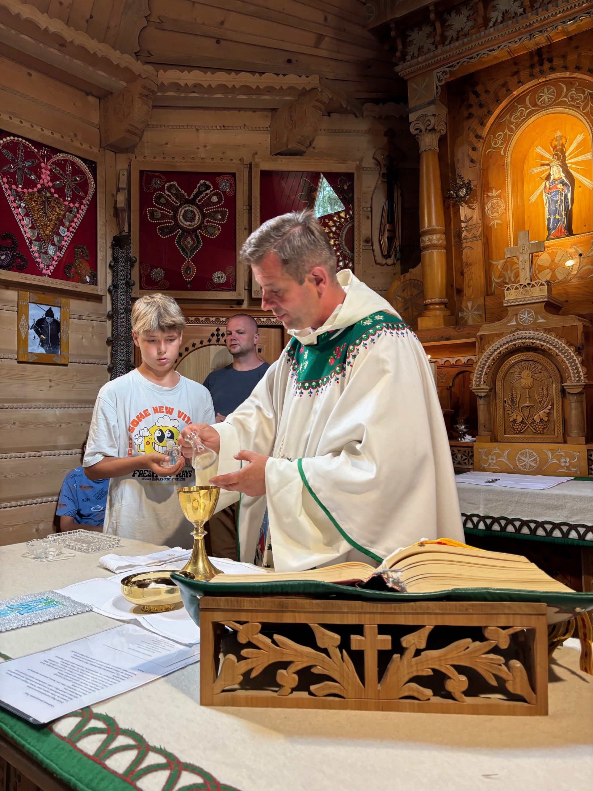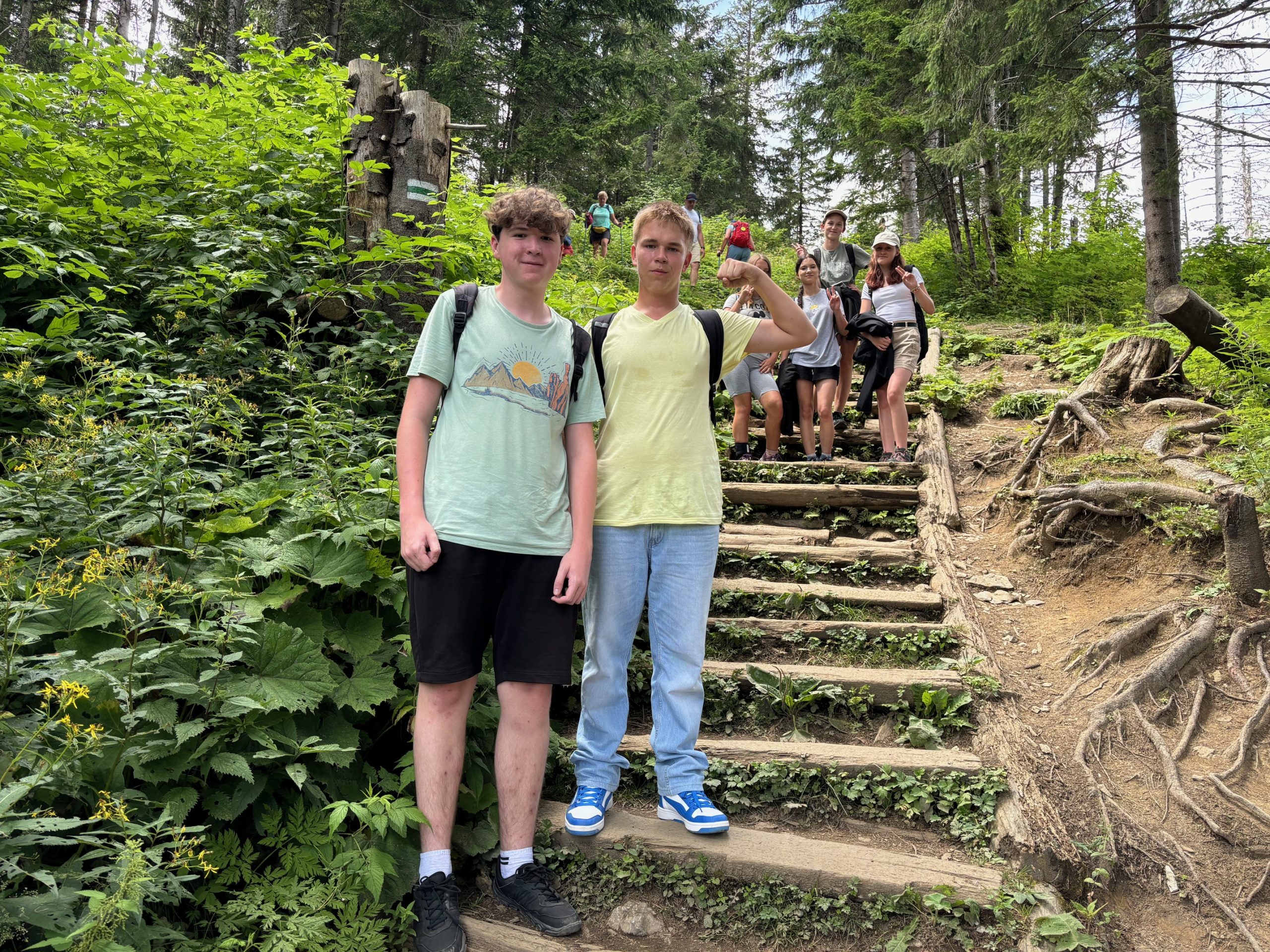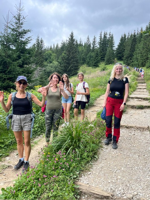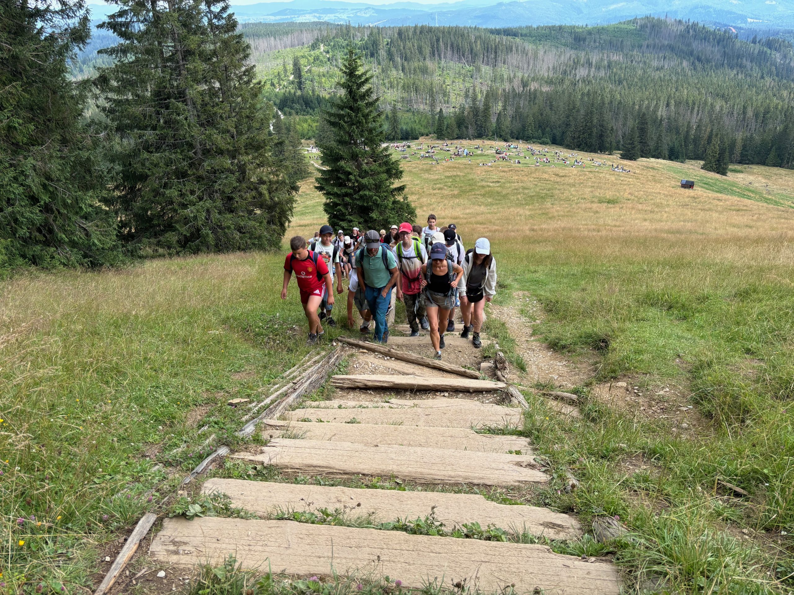 Za nami już połowa obozu. Mnóstwo atrakcji, moc radości i nowe znajomości. A dziś… kolejny punkt wakacyjnego programu został zrealizowany! Zdobyliśmy szczyt góry o nazwie Gęsia Szyja. To była nasza pierwsza wycieczka, dzięki której mogliśmy sprawdzić swoją wytrzymałość i wiedzę na temat pieszych wędrówek. Do celu prowadzili nas przewodnicy Tatrzańskiego Parku Narodowego. Na szlaku dbaliśmy o odpowiednie nawodnienie oraz odpoczynek. Podziwialiśmy wspaniały krajobraz Tatr z Rusinowej Polany, a potem z samego szczytu góry. Dla takich widoków warto było się trudzić. W bacówce degustowaliśmy oscypki, bundz i żętycę. W drodze powrotnej zeszliśmy na mszę świętą do malowniczego Sanktuarium pw.Matki Bożej Jaworzyńskiej Królowej Tatr na Wiktorówkach. Ksiądz Marcin w kazaniu nawiązał do kolejnej litery hasła: „G” jak GODNOŚĆ dziecka Bożego. Po trudach wędrówki, z radością zjedliśmy obiadokolację. Późnym popołudniem bawiliśmy się na boisku i w basenie na terenie ośrodka. Część uczestników, razem z wychowawcami, wybrała się na spacer po okolicy połączony z zakupami. Jutro czekają na nas kolejne atrakcje. Trzeba zbierać nowe siły.