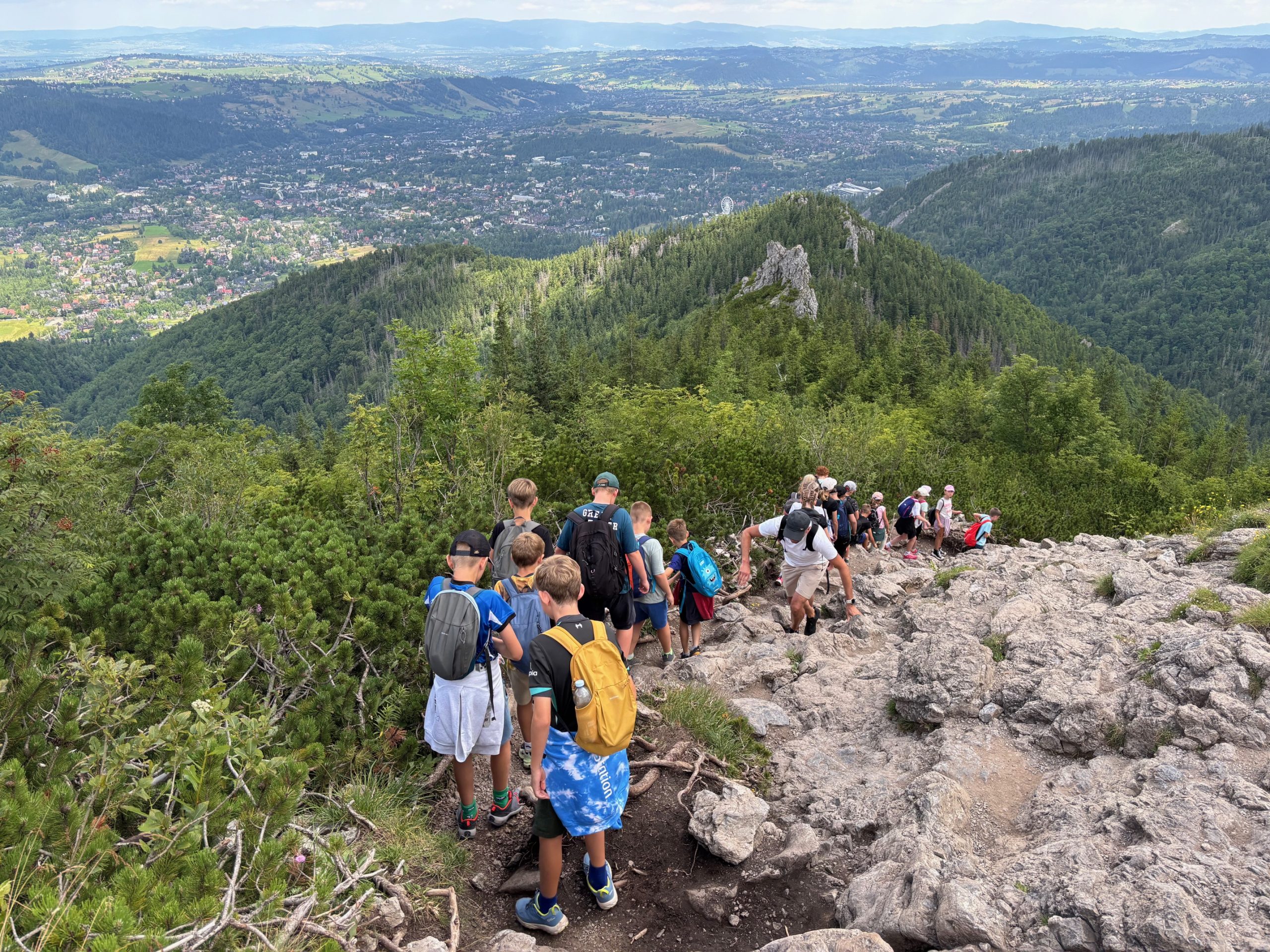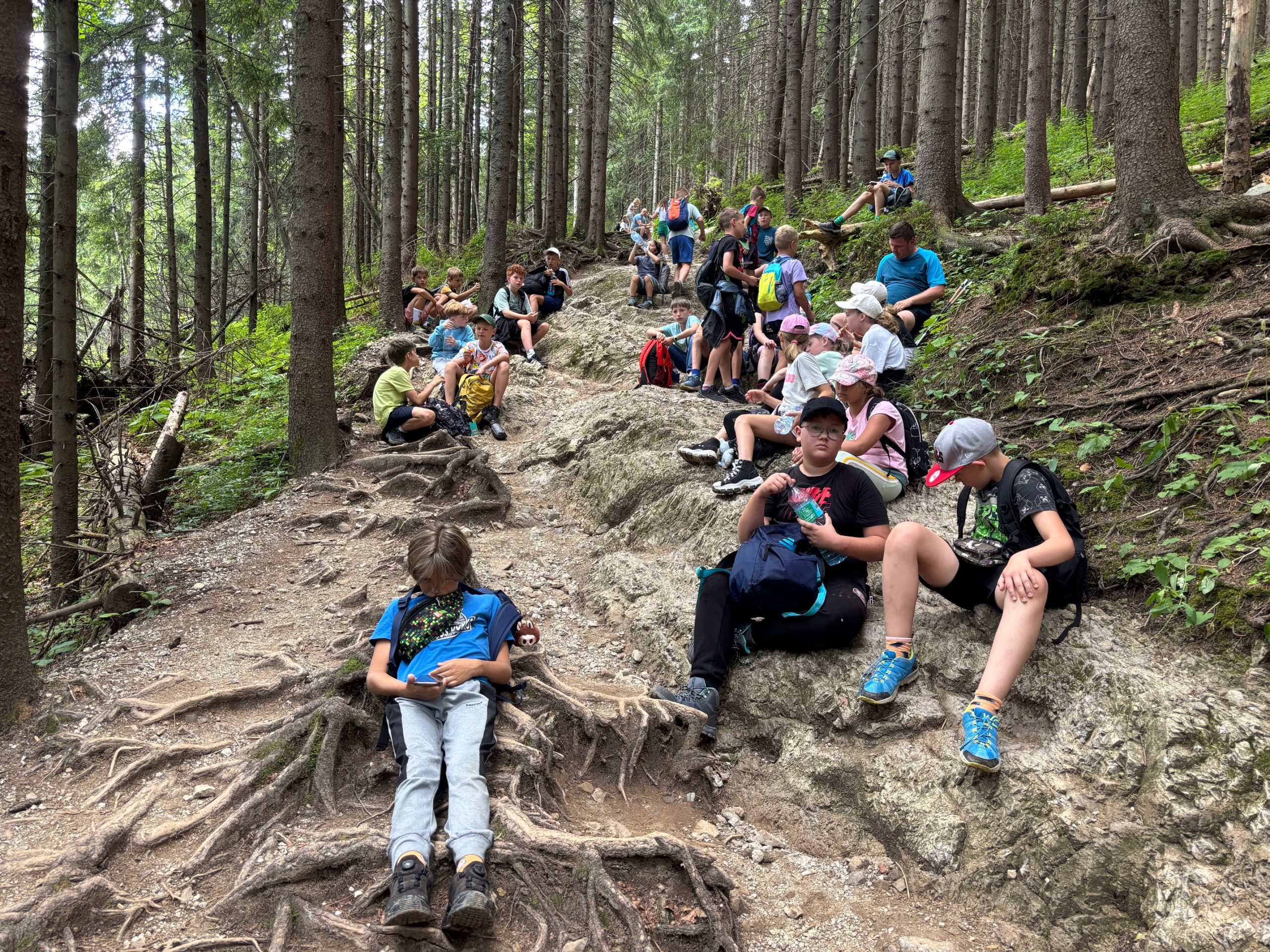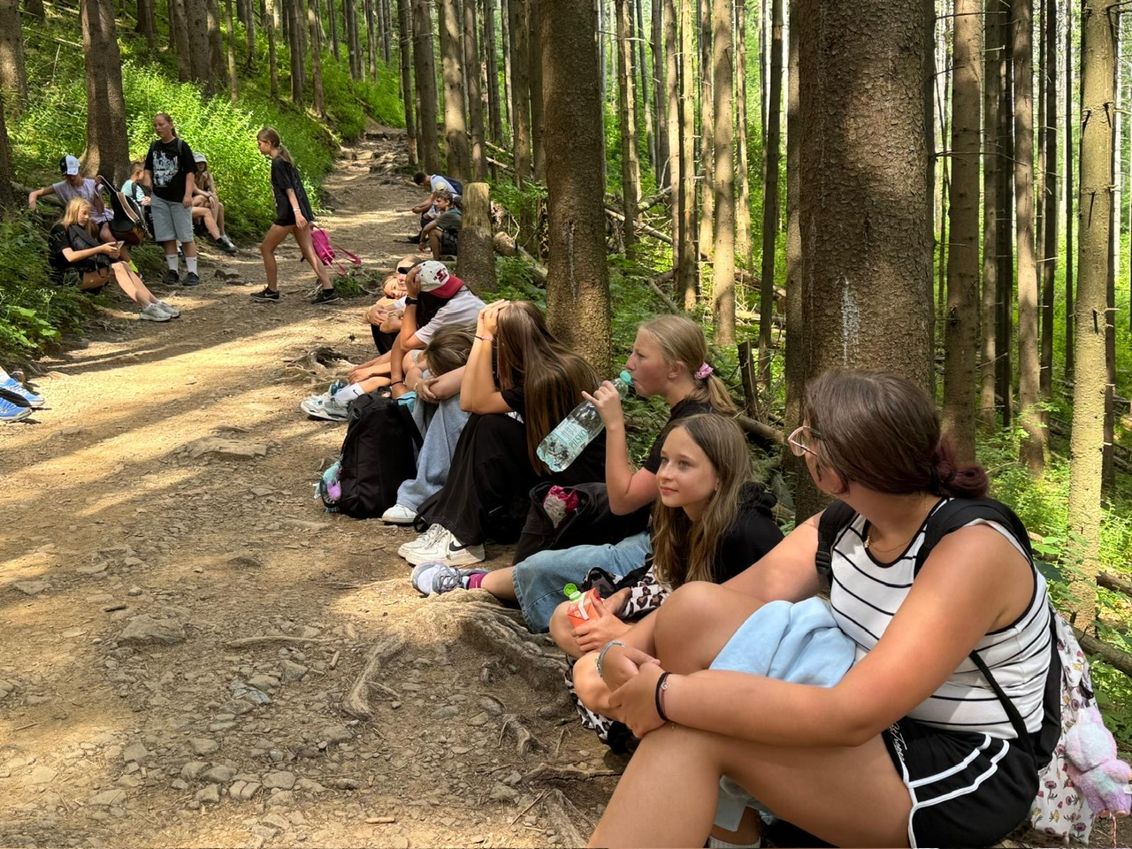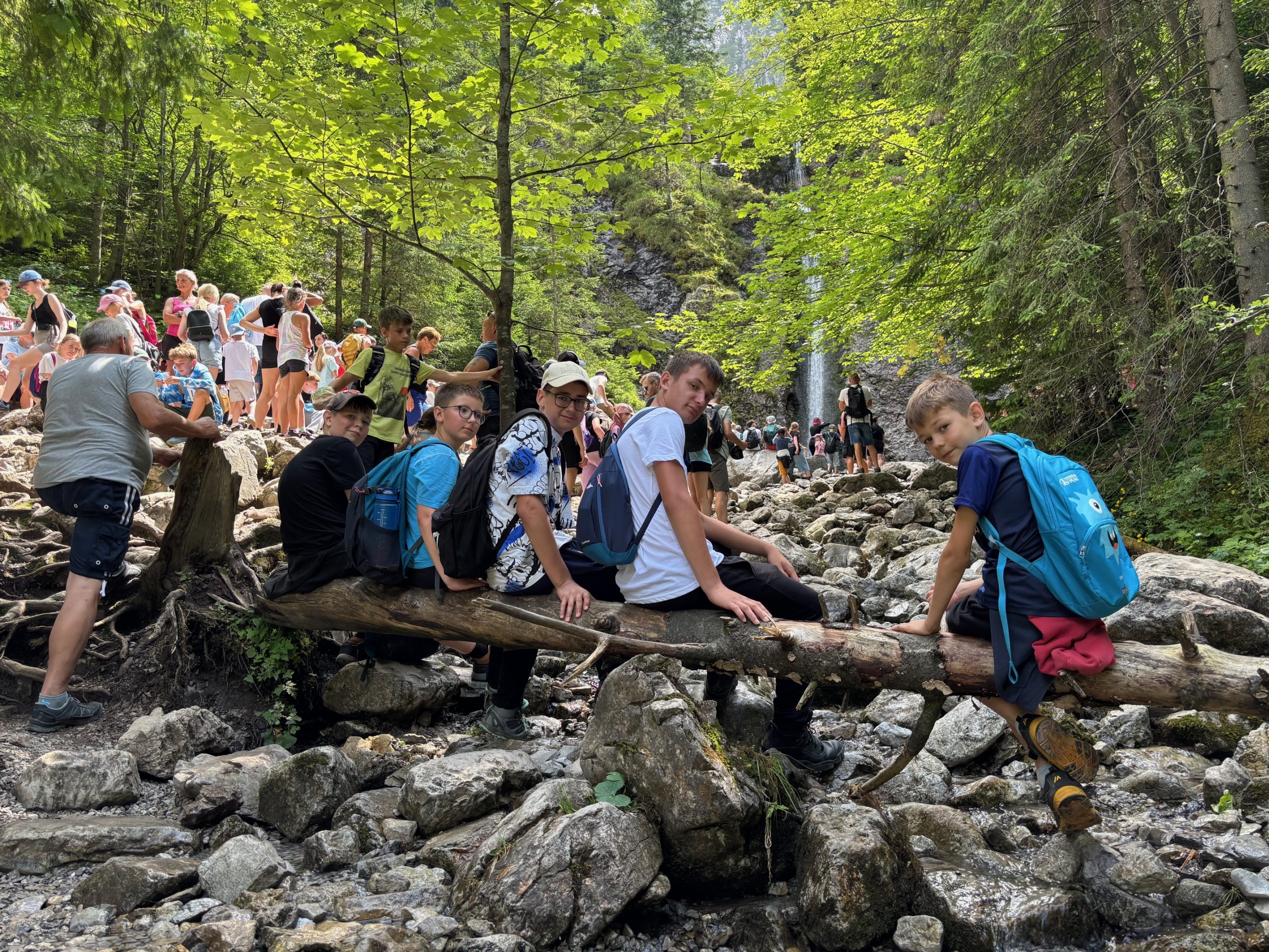 Dzisiejszy dzień był sponsorowany przez cyferkę 7 i literkę „A” jak aktywność. W siódmym dniu obozu , mieliśmy pobudkę o siódmej rano, zjedliśmy jak zwykle pyszne śniadanko i wyruszyliśmy na górską wyprawę. Spod Wielkiej Krokwi wspięliśmy się Doliną Białego na Sarnią Skałę. Jak powiedział przewodnik: siedem kilometrów pod górę – „dla tych którzy lubią pod górkę” i siedem kilometrów w dół – „dla tych którzy lubią z górki”. Po wdrapaniu się na szczyt, który ma 1378 m.n.p.m podziwialiśmy pobliski Giewont, rozległą panoramę Zakopanego i otaczających gór. Schodząc Doliną Strążyską, zaliczyliśmy sesję zdjęciową przy wodospadzie Siklawica a po dotarciu na miejsce zbiórki mieliśmy okazję zobaczyć letnie treningi skoków narciarskich z Wielkiej Krokwi pokrytej igelitem. Po wyczerpującej wędrówce powróciliśmy do ośrodka na obiadokolację, a następnie na Mszę Świętą. Wieczór wypełniły warsztaty i spacer po Małem Cichem.