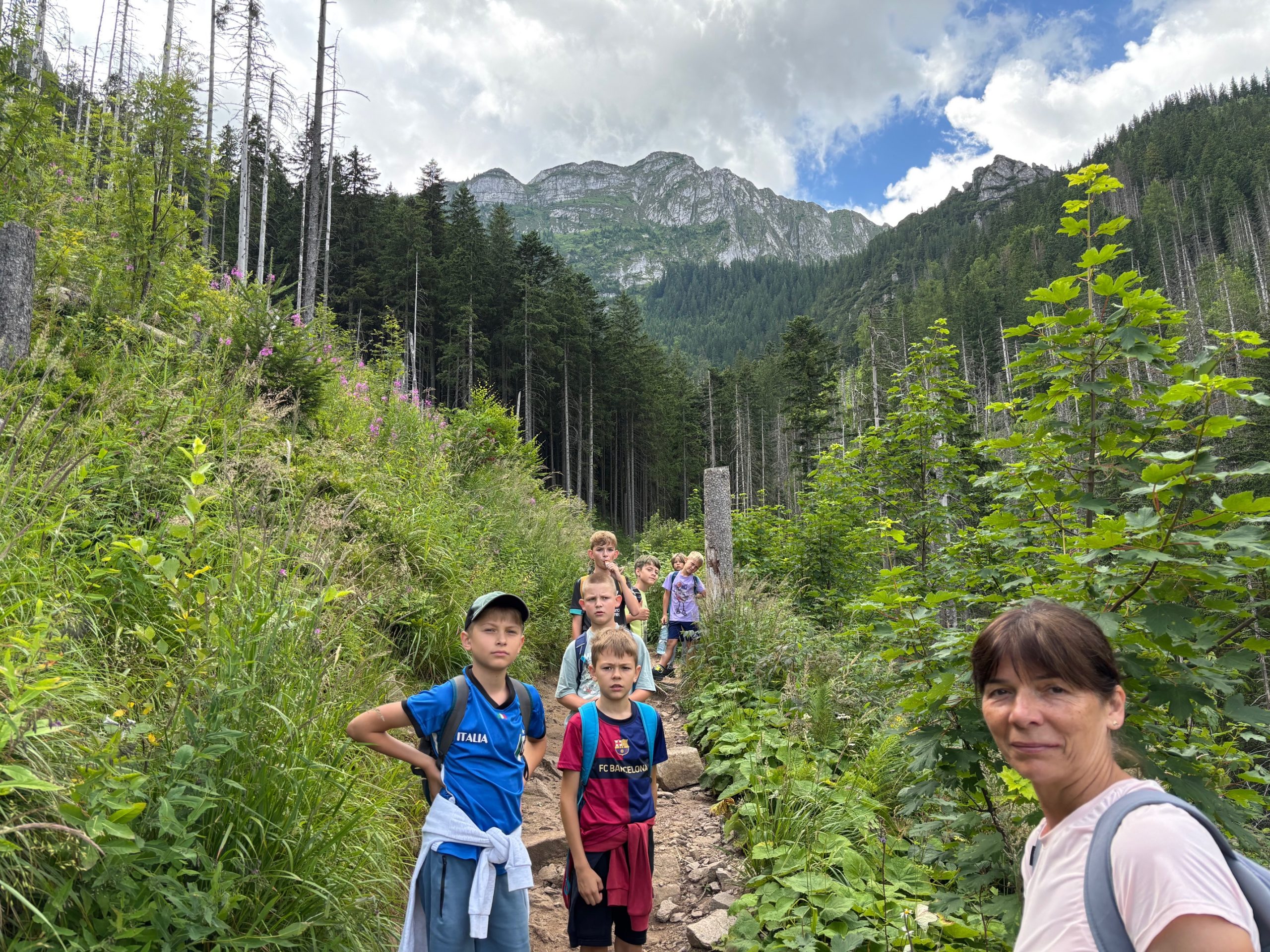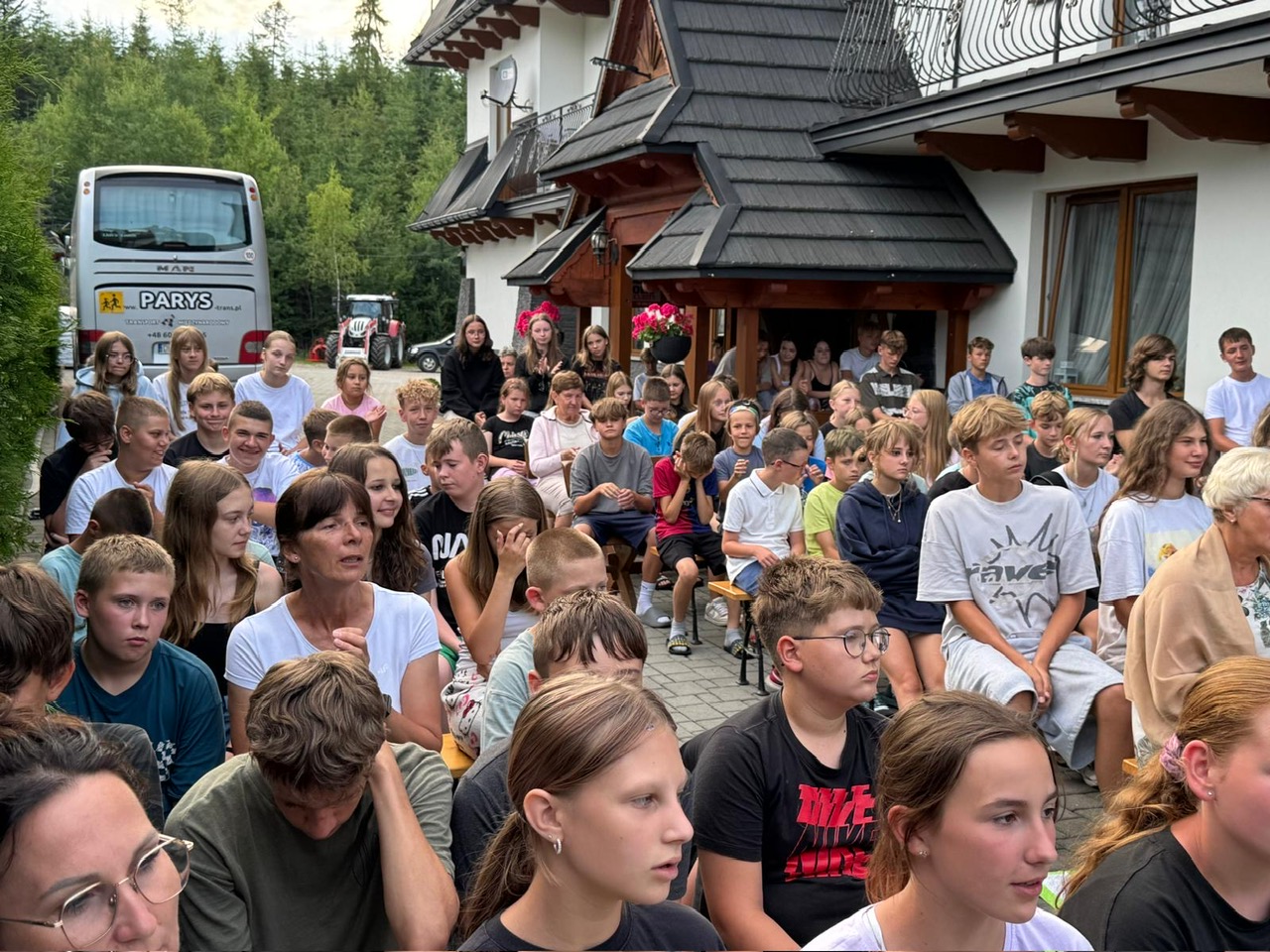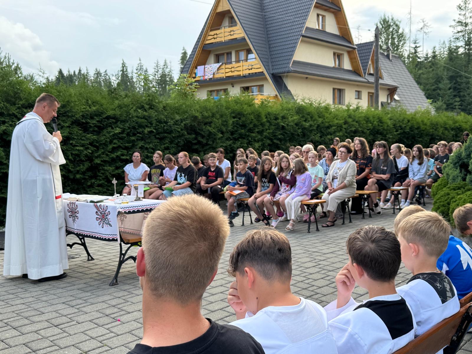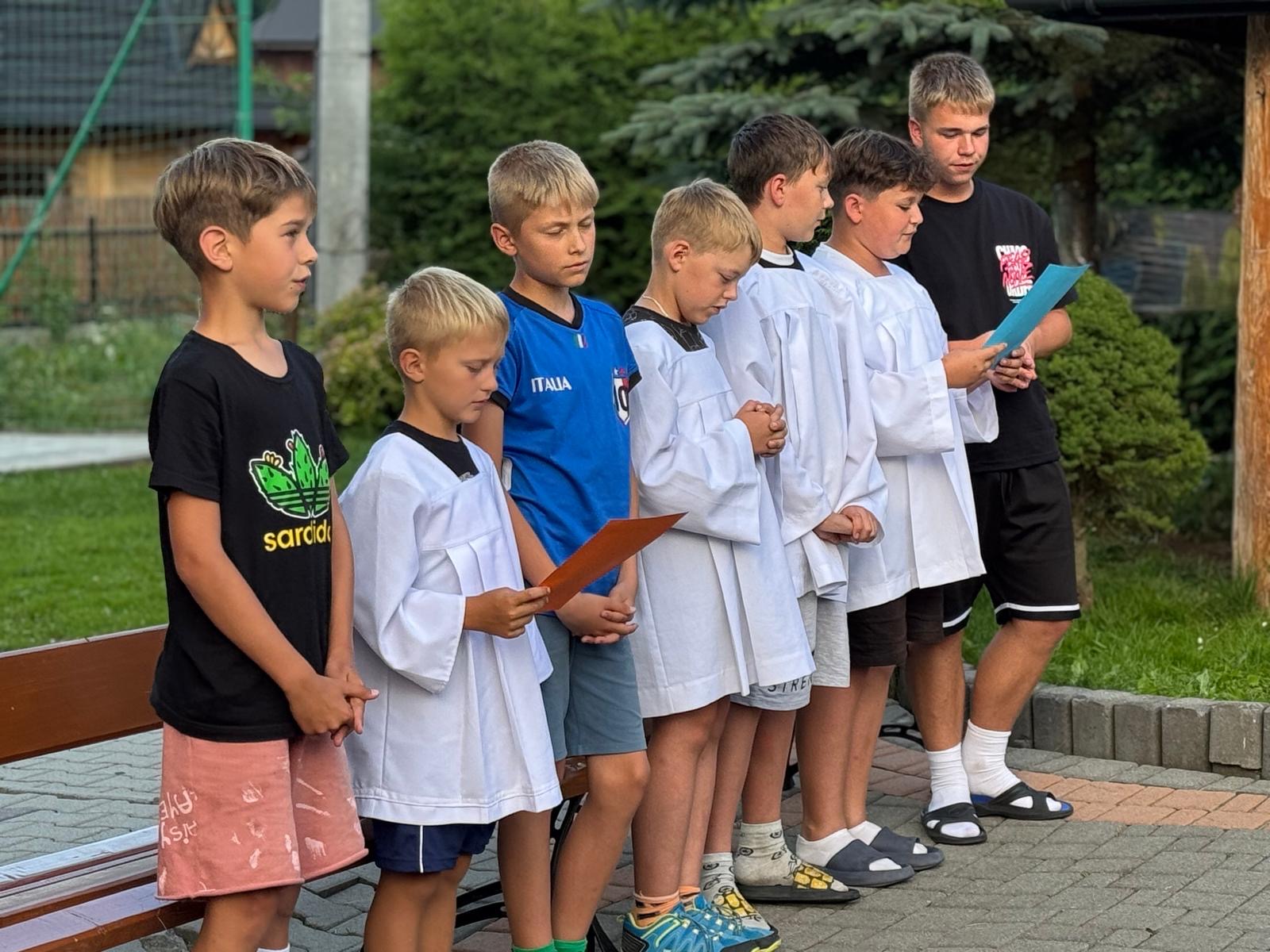 Dzisiejszy dzień był sponsorowany przez cyferkę 7 i literkę „A” jak aktywność. W siódmym dniu obozu , mieliśmy pobudkę o siódmej rano, zjedliśmy jak zwykle pyszne śniadanko i wyruszyliśmy na górską wyprawę. Spod Wielkiej Krokwi wspięliśmy się Doliną Białego na Sarnią Skałę. Jak powiedział przewodnik: siedem kilometrów pod górę – „dla tych którzy lubią pod górkę” i siedem kilometrów w dół – „dla tych którzy lubią z górki”. Po wdrapaniu się na szczyt, który ma 1378 m.n.p.m podziwialiśmy pobliski Giewont, rozległą panoramę Zakopanego i otaczających gór. Schodząc Doliną Strążyską, zaliczyliśmy sesję zdjęciową przy wodospadzie Siklawica a po dotarciu na miejsce zbiórki mieliśmy okazję zobaczyć letnie treningi skoków narciarskich z Wielkiej Krokwi pokrytej igelitem. Po wyczerpującej wędrówce powróciliśmy do ośrodka na obiadokolację, a następnie na Mszę Świętą. Wieczór wypełniły warsztaty i spacer po Małem Cichem.
