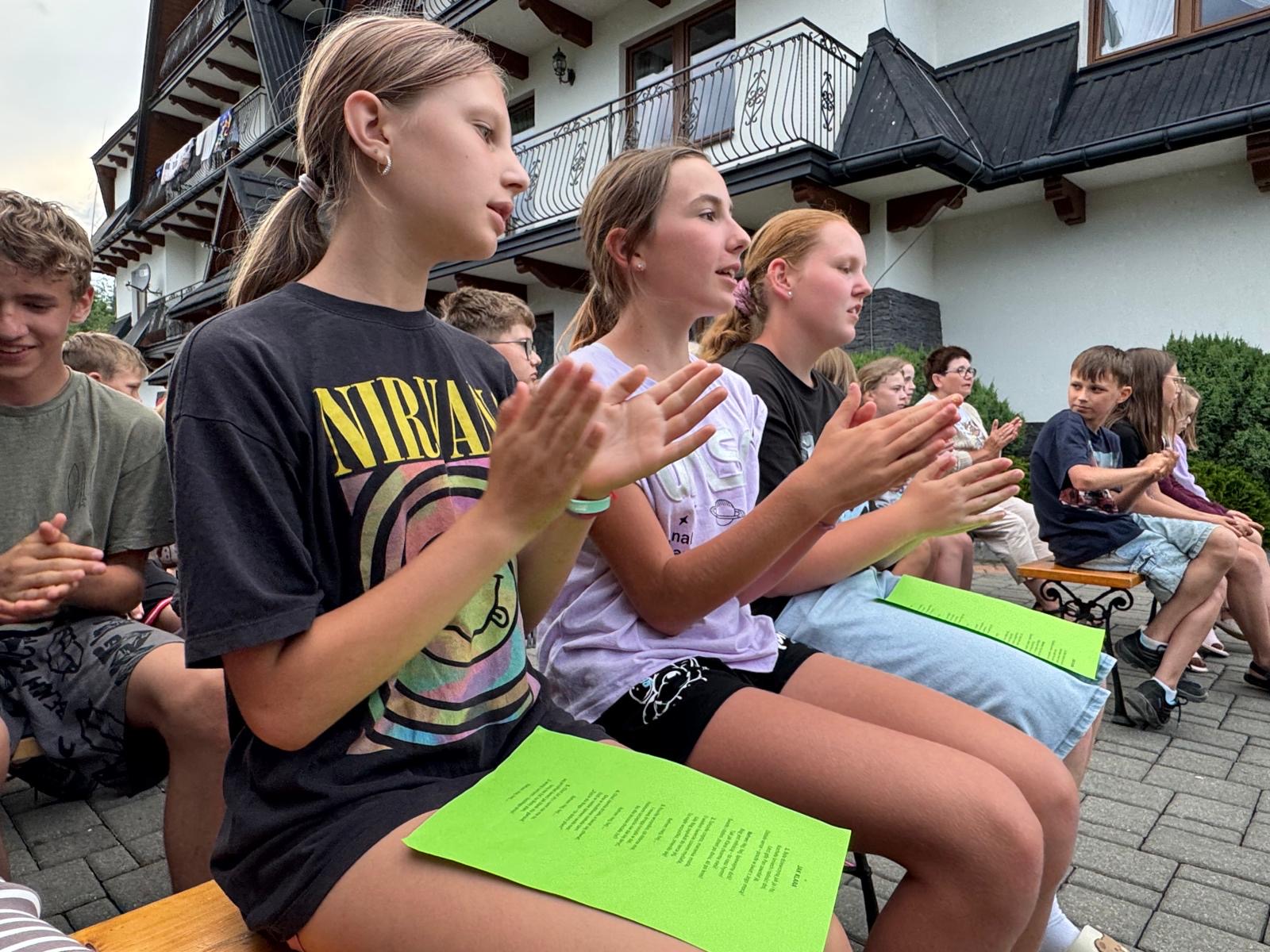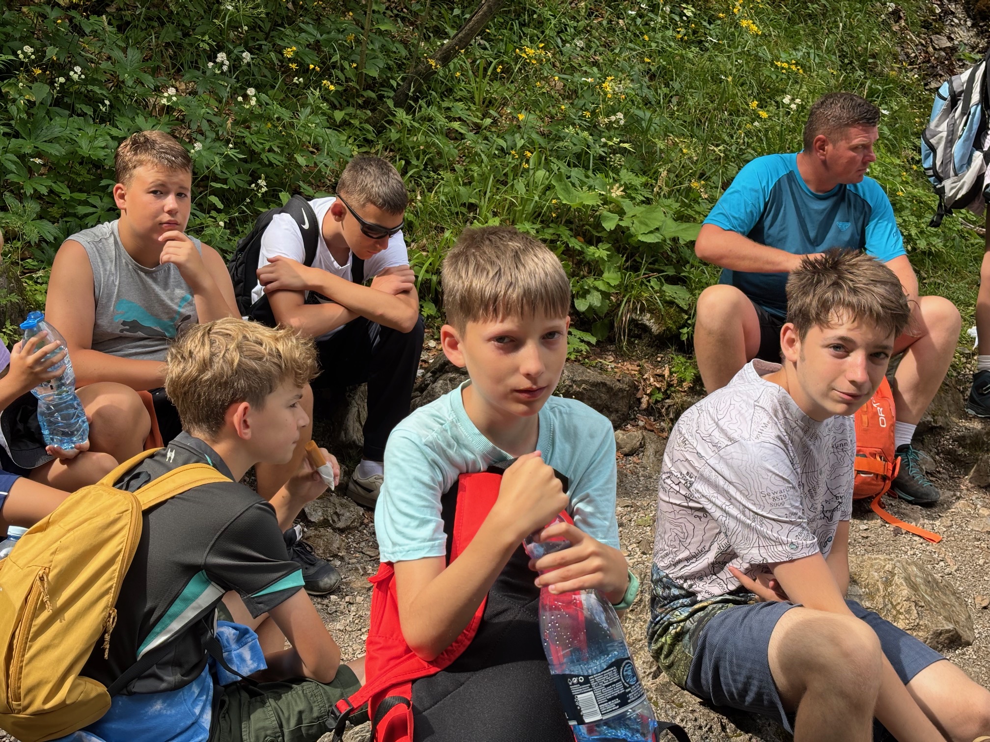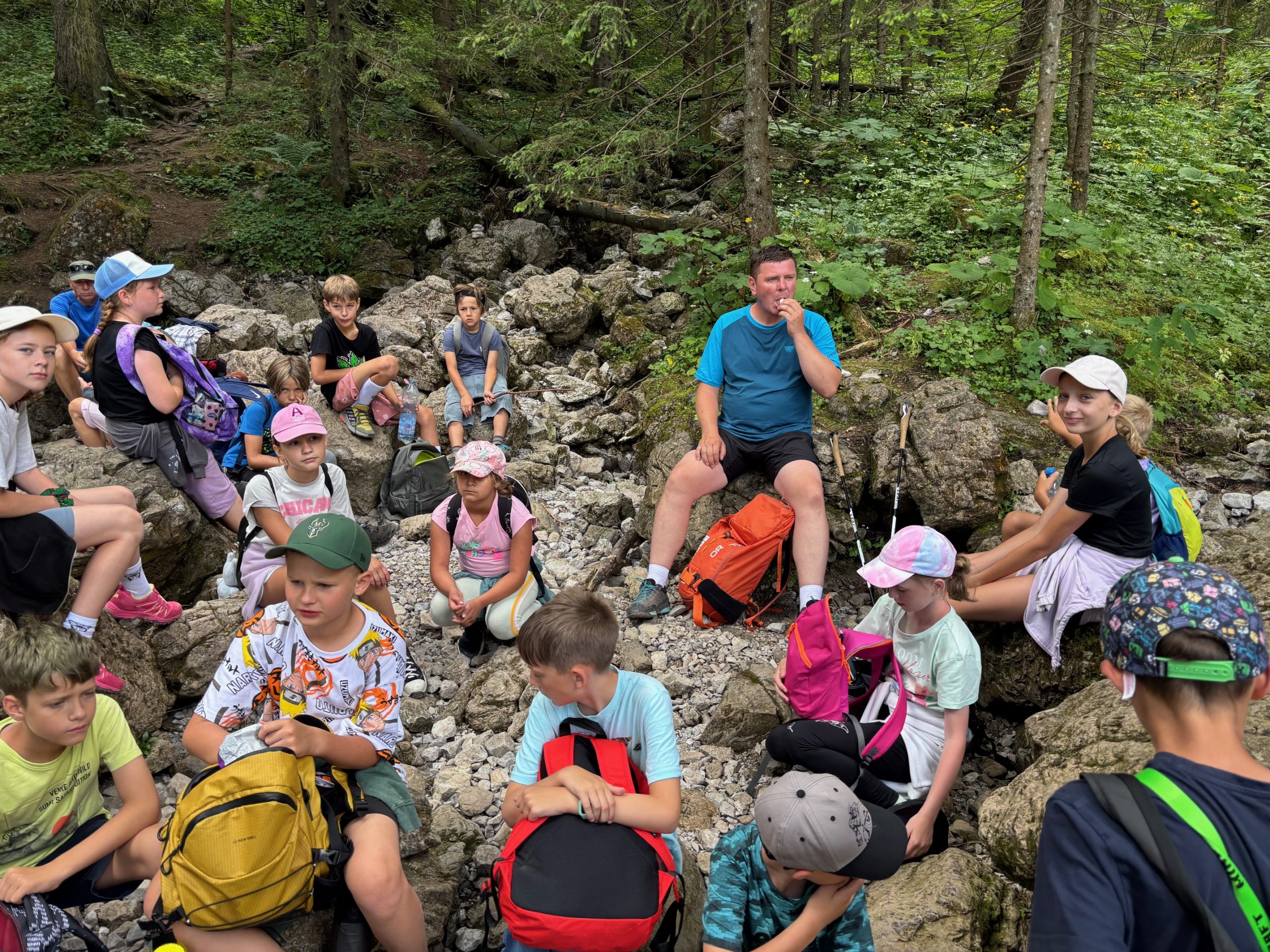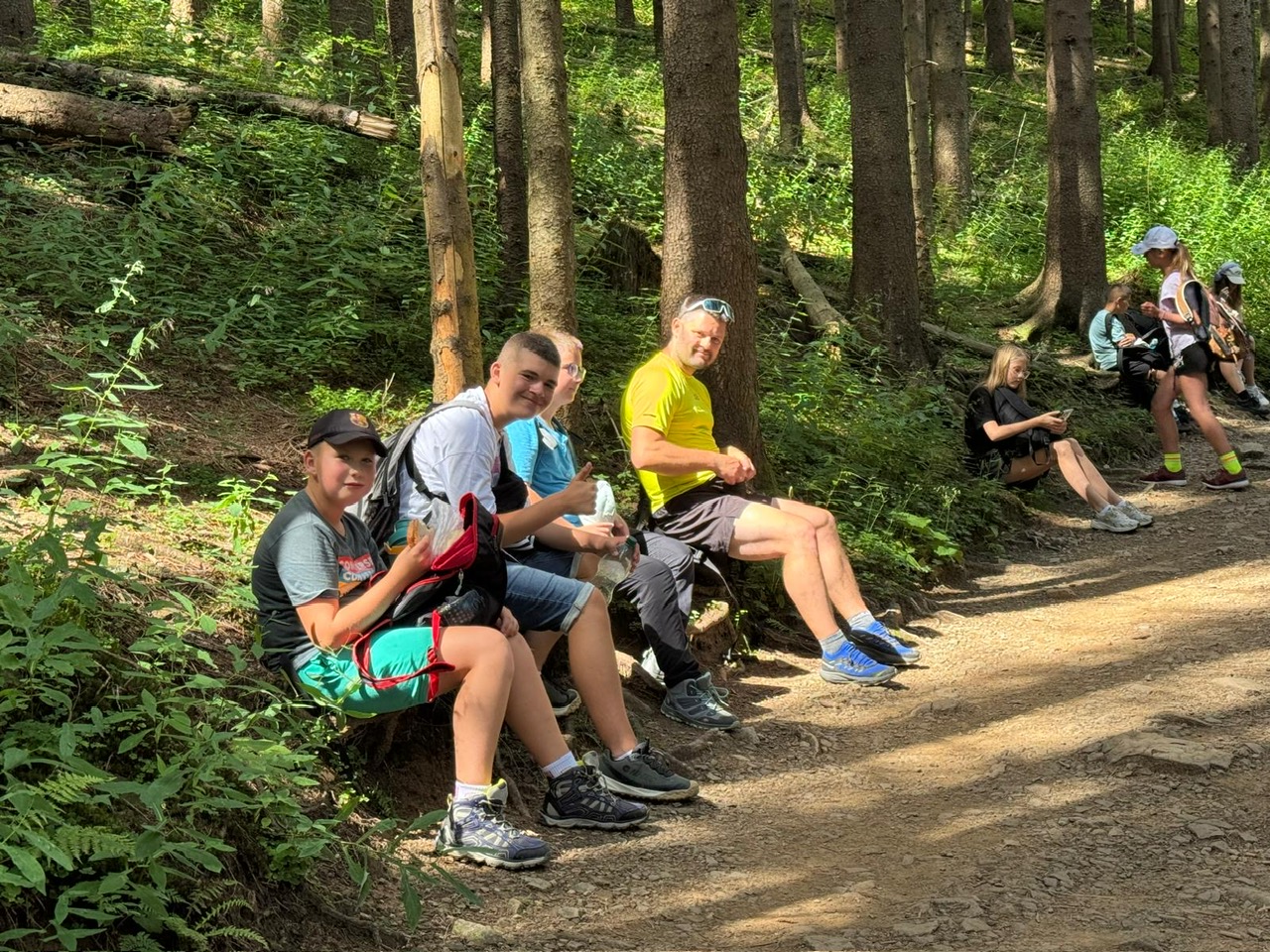Dzisiejszy dzień był sponsorowany przez cyferkę 7 i literkę „A” jak aktywność. W siódmym dniu obozu , mieliśmy pobudkę o siódmej rano, zjedliśmy jak zwykle pyszne śniadanko i wyruszyliśmy na górską wyprawę. Spod Wielkiej Krokwi wspięliśmy się Doliną Białego na Sarnią Skałę. Jak powiedział przewodnik: siedem kilometrów pod górę – „dla tych którzy lubią pod górkę” i siedem kilometrów w dół – „dla tych którzy lubią z górki”. Po wdrapaniu się na szczyt, który ma 1378 m.n.p.m podziwialiśmy pobliski Giewont, rozległą panoramę Zakopanego i otaczających gór. Schodząc Doliną Strążyską, zaliczyliśmy sesję zdjęciową przy wodospadzie Siklawica a po dotarciu na miejsce zbiórki mieliśmy okazję zobaczyć letnie treningi skoków narciarskich z Wielkiej Krokwi pokrytej igelitem. Po wyczerpującej wędrówce powróciliśmy do ośrodka na obiadokolację, a następnie na Mszę Świętą. Wieczór wypełniły warsztaty i spacer po Małem Cichem.