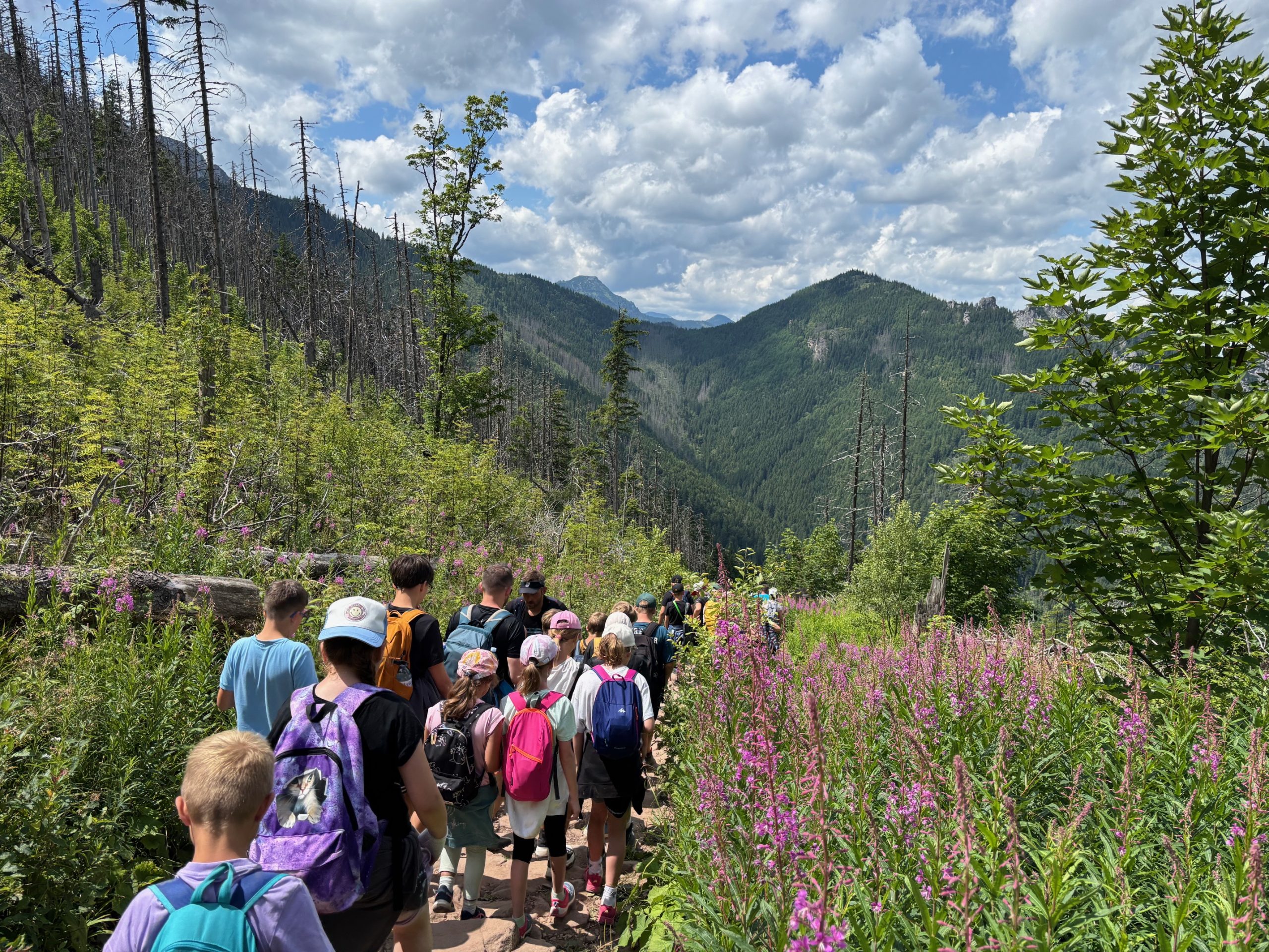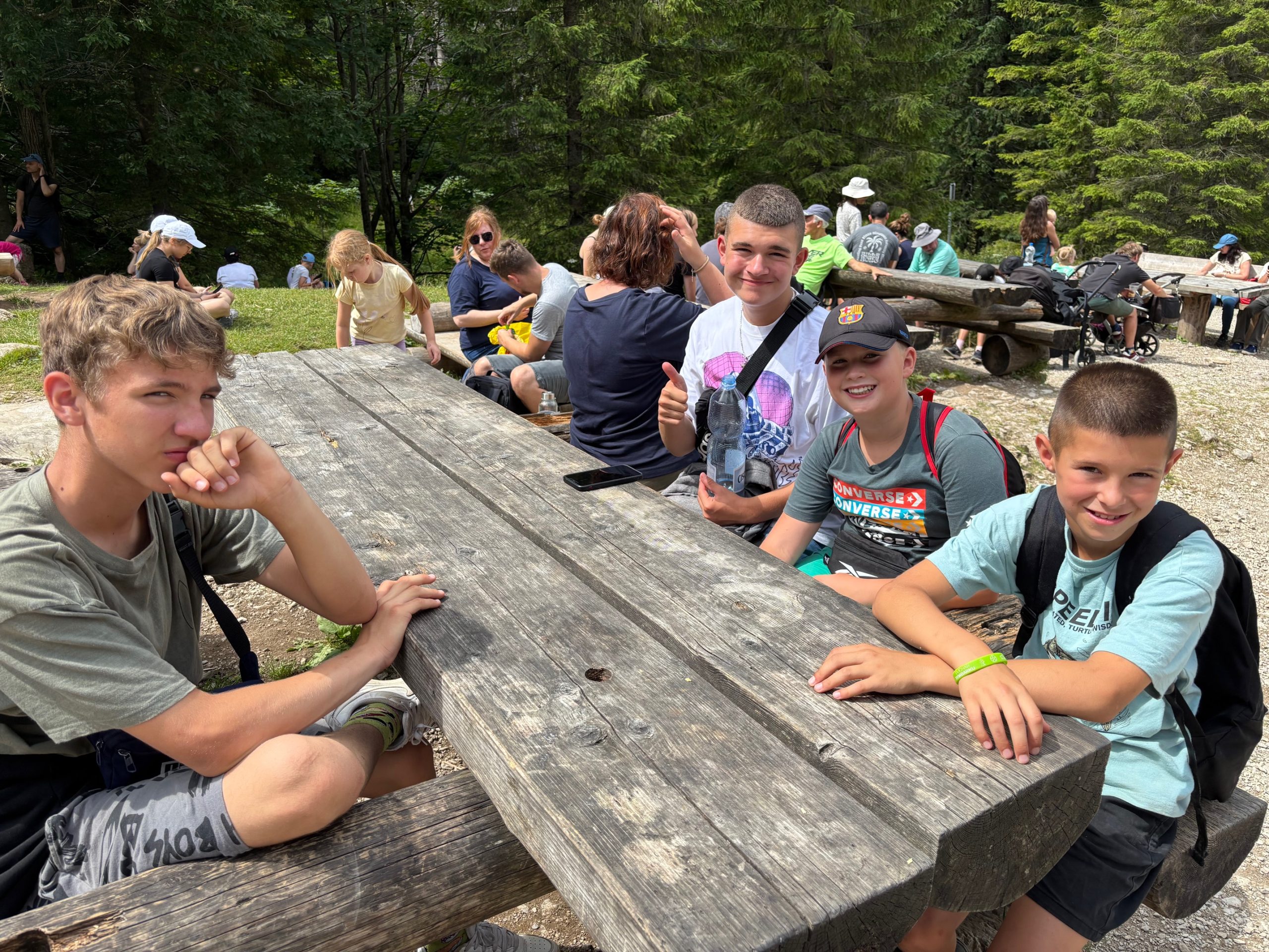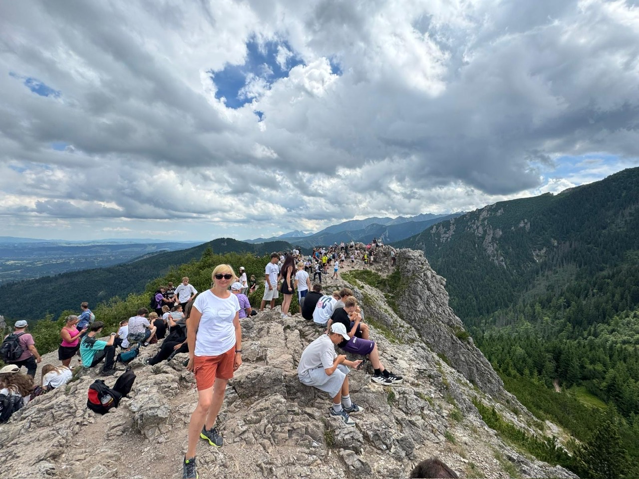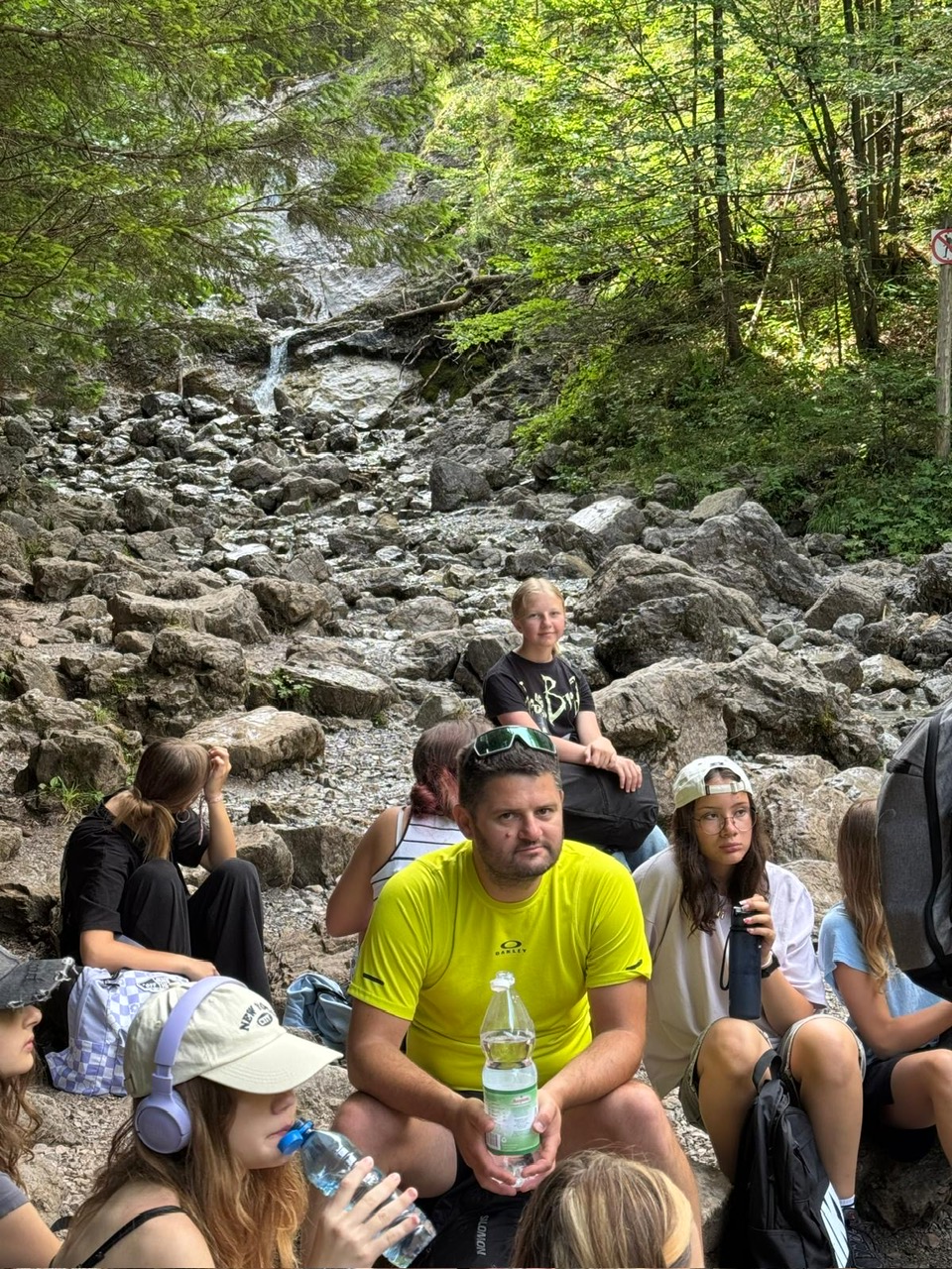 Dzisiejszy dzień był sponsorowany przez cyferkę 7 i literkę „A” jak aktywność. W siódmym dniu obozu , mieliśmy pobudkę o siódmej rano, zjedliśmy jak zwykle pyszne śniadanko i wyruszyliśmy na górską wyprawę. Spod Wielkiej Krokwi wspięliśmy się Doliną Białego na Sarnią Skałę. Jak powiedział przewodnik: siedem kilometrów pod górę – „dla tych którzy lubią pod górkę” i siedem kilometrów w dół – „dla tych którzy lubią z górki”. Po wdrapaniu się na szczyt, który ma 1378 m.n.p.m podziwialiśmy pobliski Giewont, rozległą panoramę Zakopanego i otaczających gór. Schodząc Doliną Strążyską, zaliczyliśmy sesję zdjęciową przy wodospadzie Siklawica a po dotarciu na miejsce zbiórki mieliśmy okazję zobaczyć letnie treningi skoków narciarskich z Wielkiej Krokwi pokrytej igelitem. Po wyczerpującej wędrówce powróciliśmy do ośrodka na obiadokolację, a następnie na Mszę Świętą. Wieczór wypełniły warsztaty i spacer po Małem Cichem.