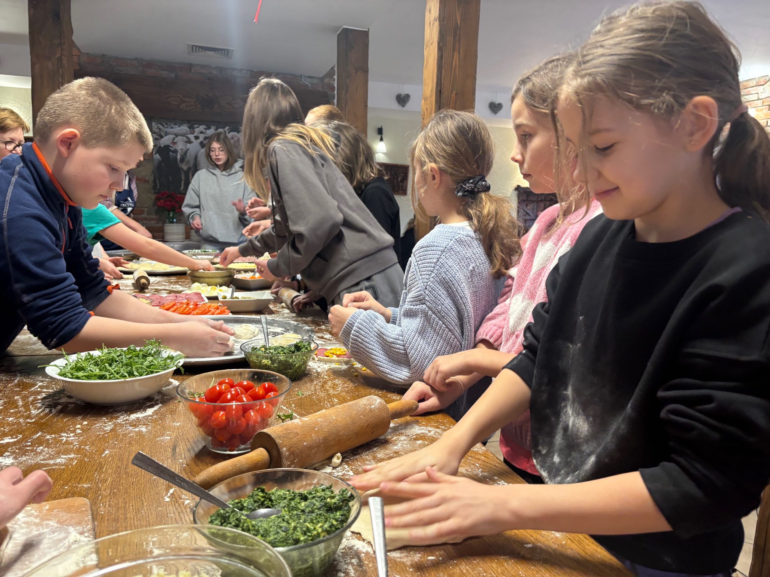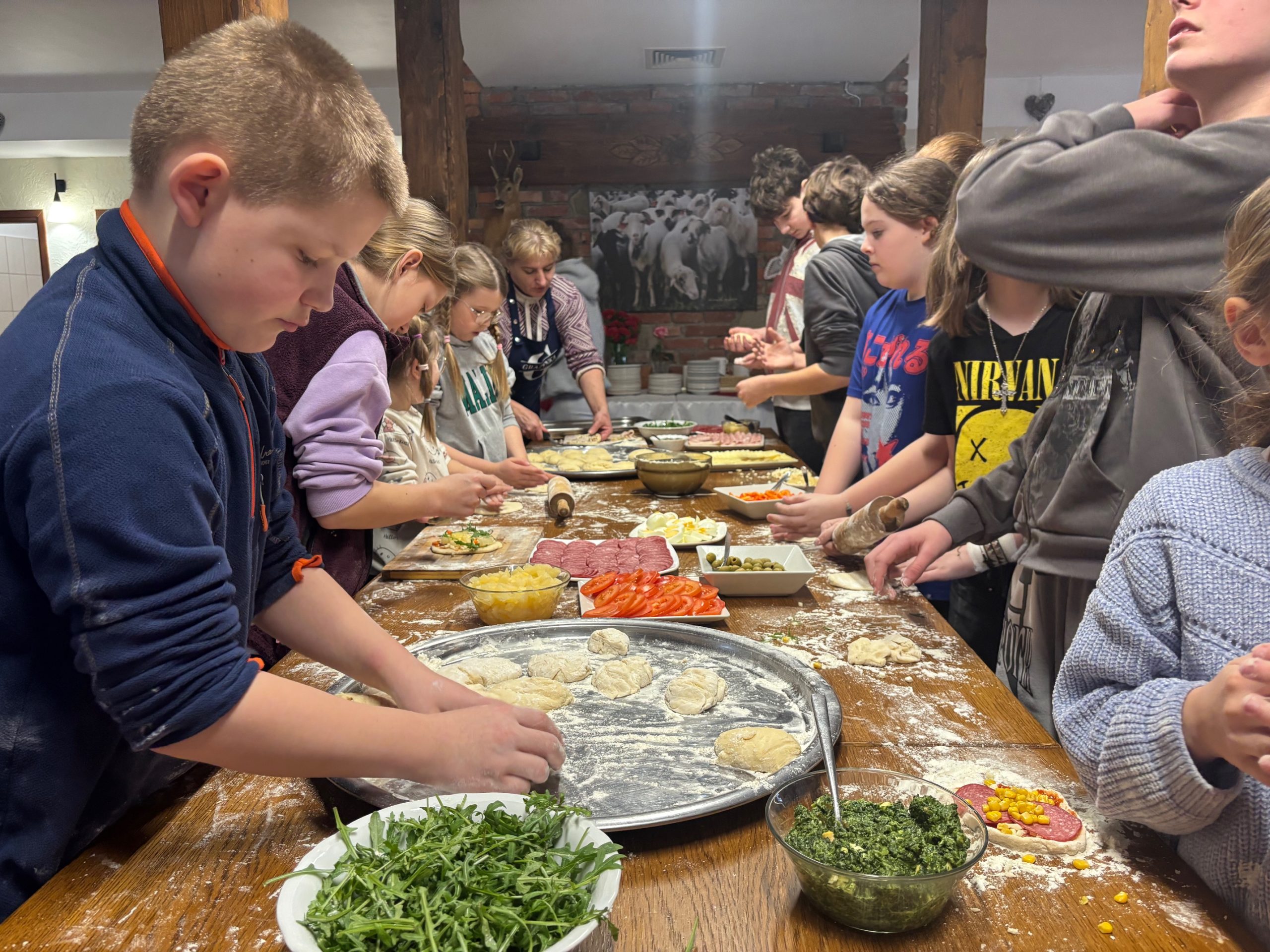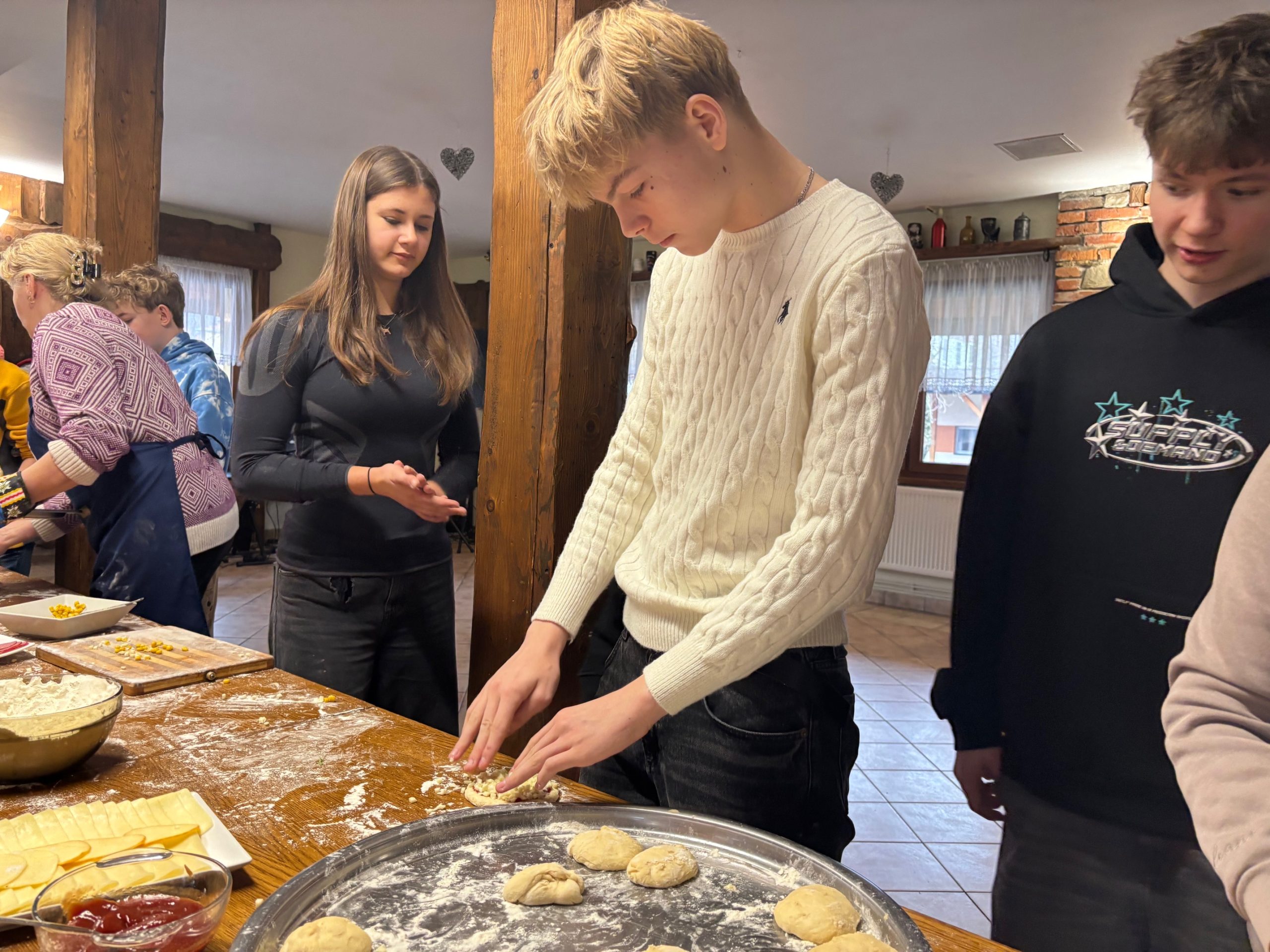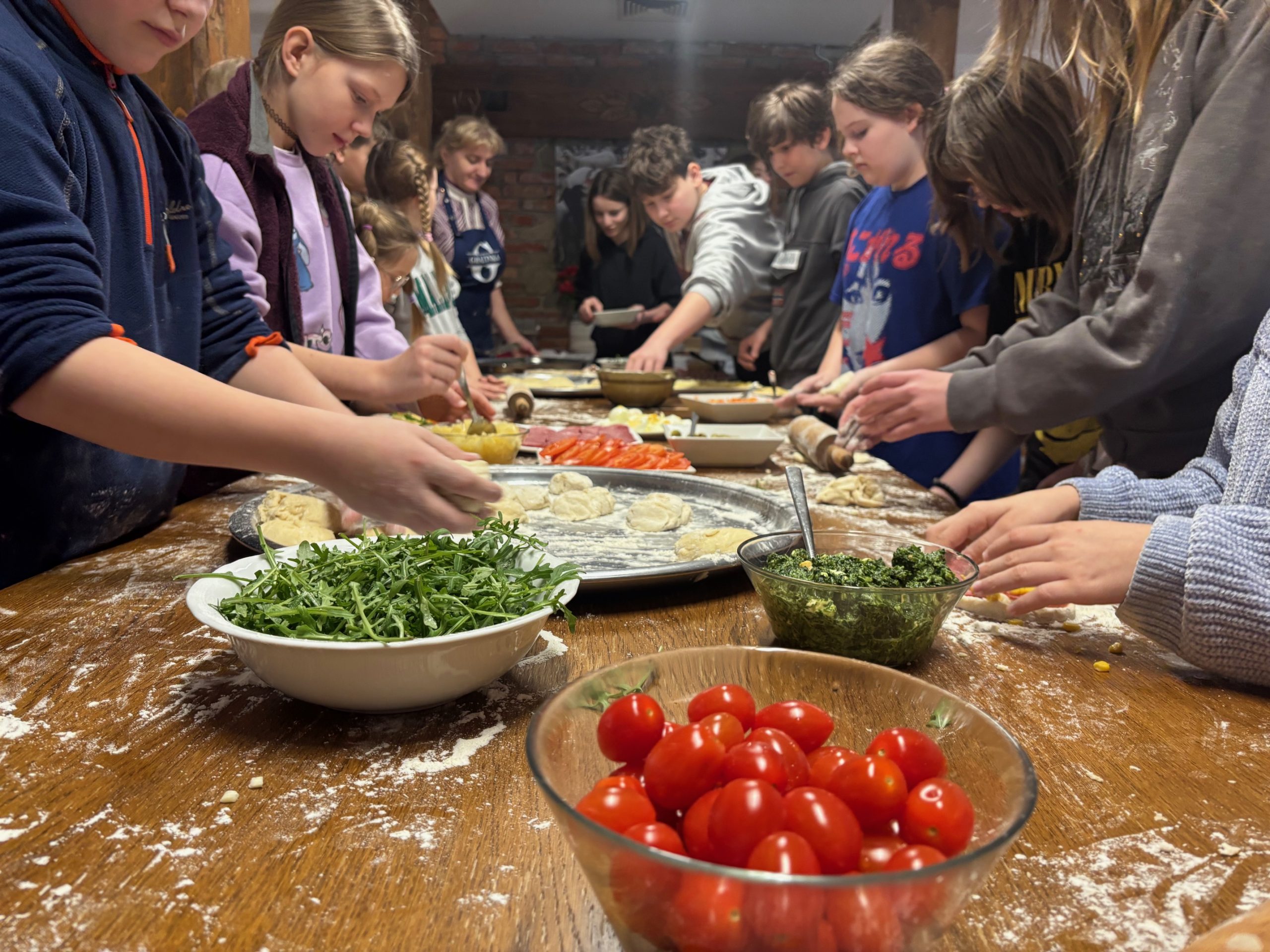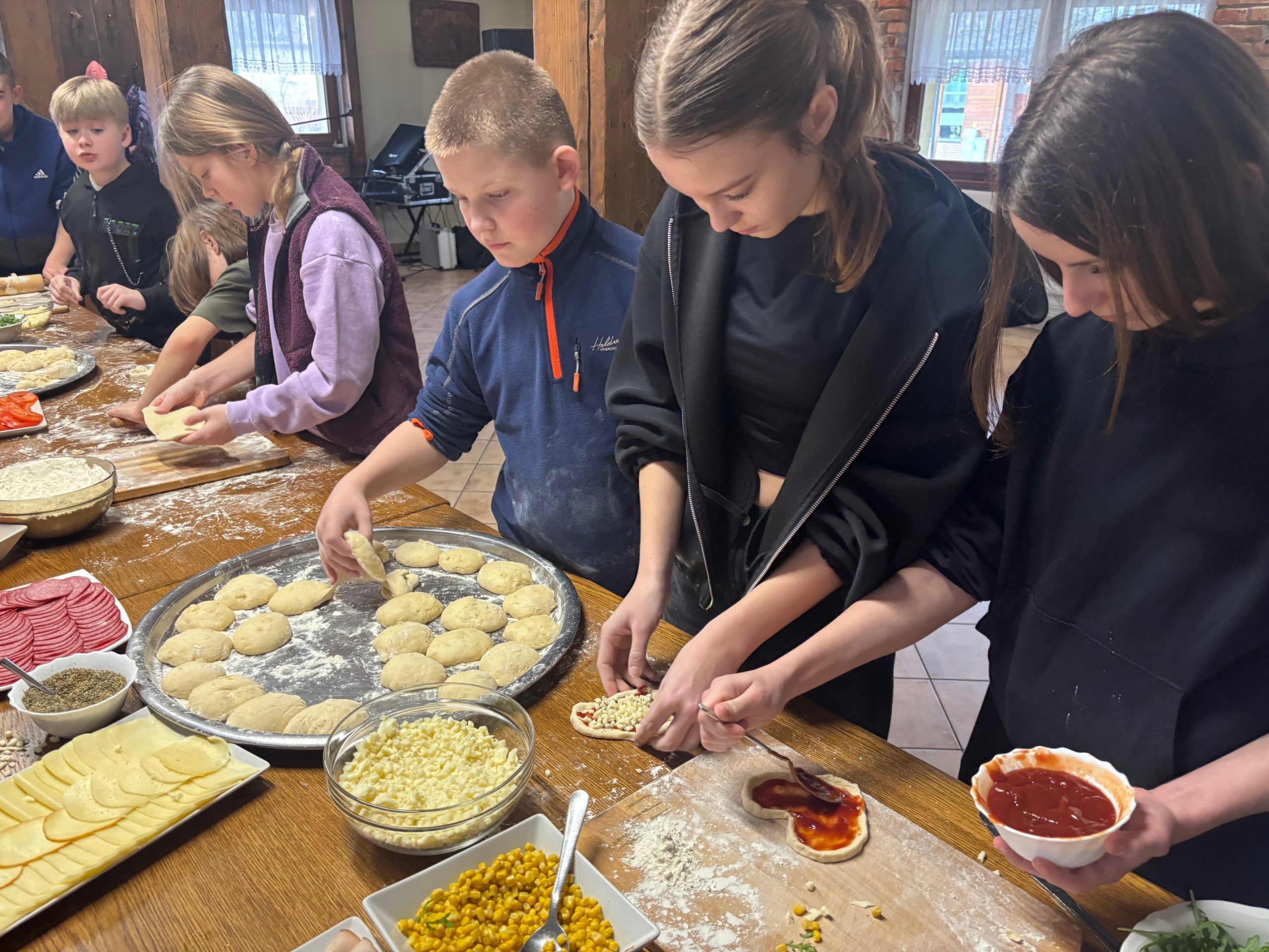 Dzień rozpoczęliśmy od pobudki i wspólnego wyjścia na śniadanie, które dało nam siłę na kolejne atrakcje🏋️♀️. Następnie wzięliśmy udział w warsztatach z robienia pizzy – każdy mógł przygotować swoją własną kompozycję smaków🍕. Po krótkiej przerwie ruszyliśmy na Dzień Sportu, pełen gier, zabaw i rywalizacji w duchu fair play🏃♀️➡️🏃♂️. Nie zabrakło też spaceru po okolicy, podczas którego mogliśmy nacieszyć się zimowym krajobrazem🏔️.