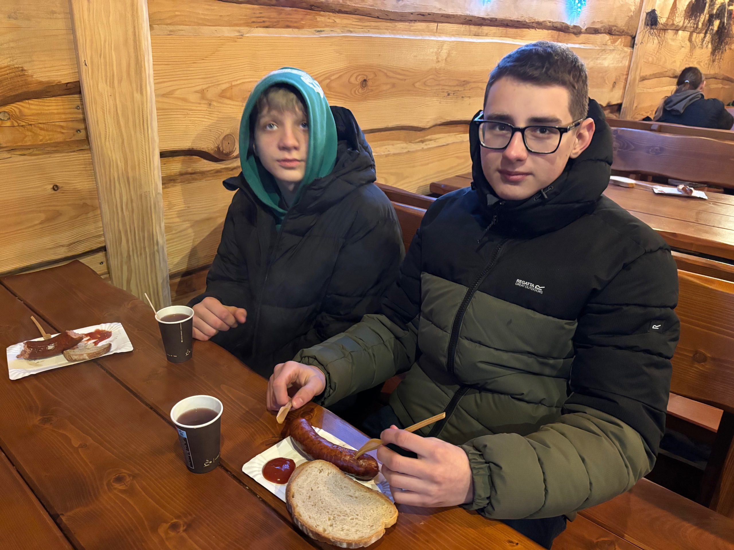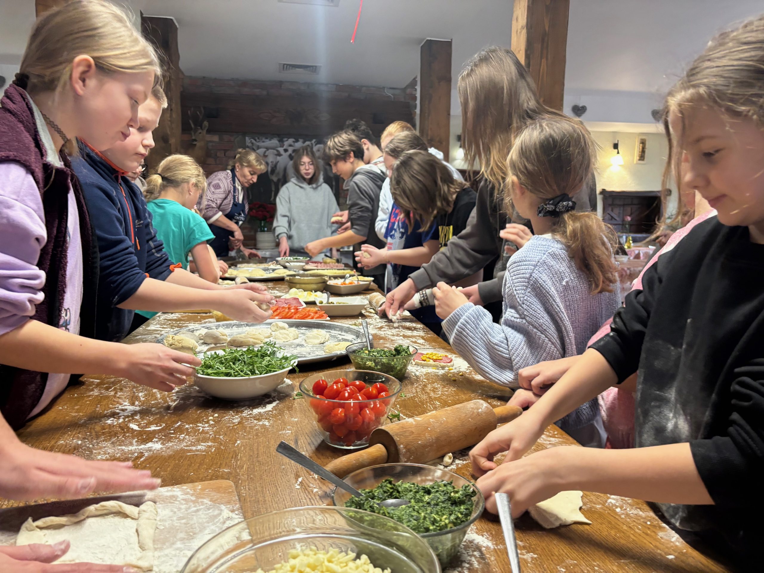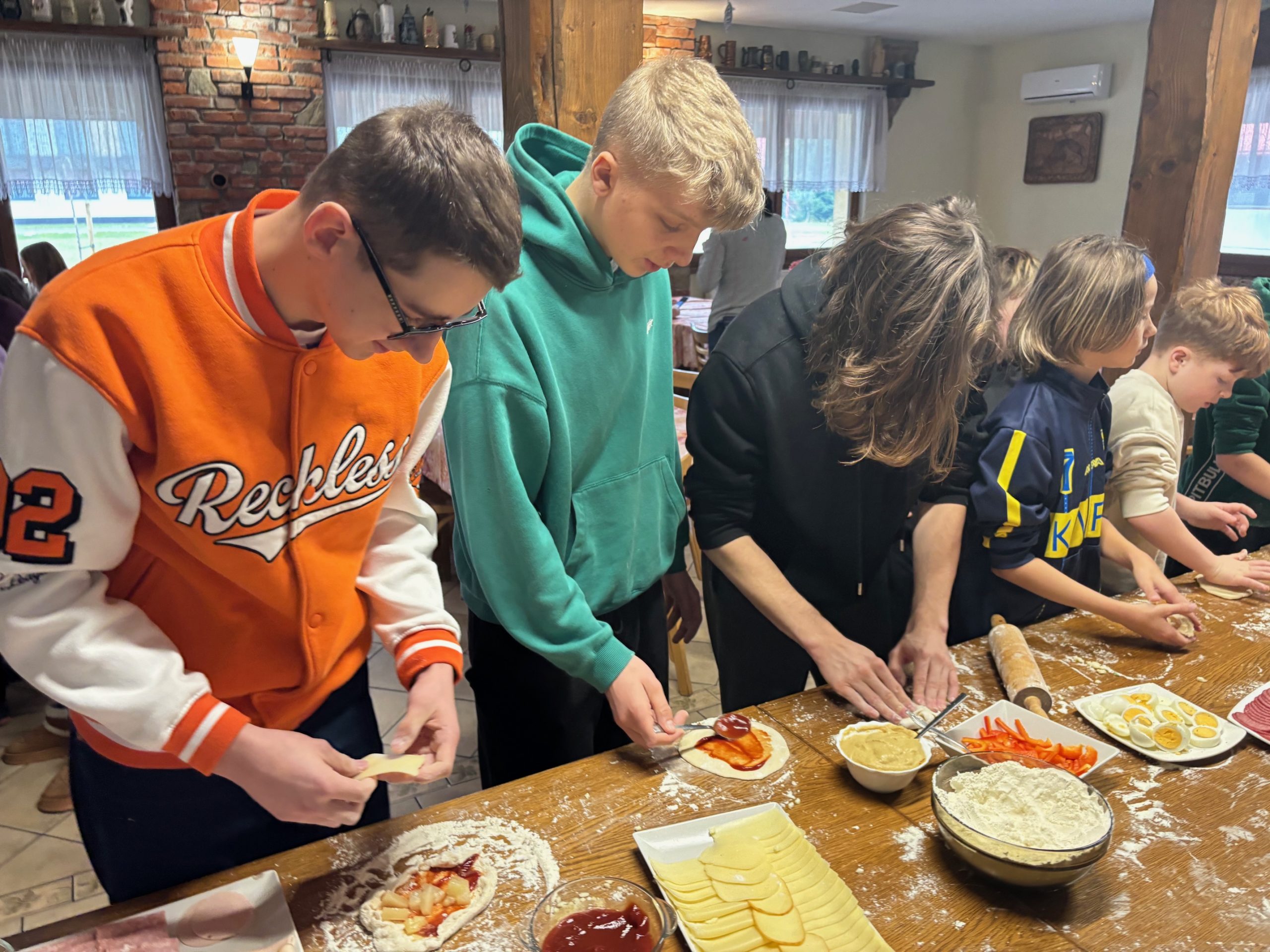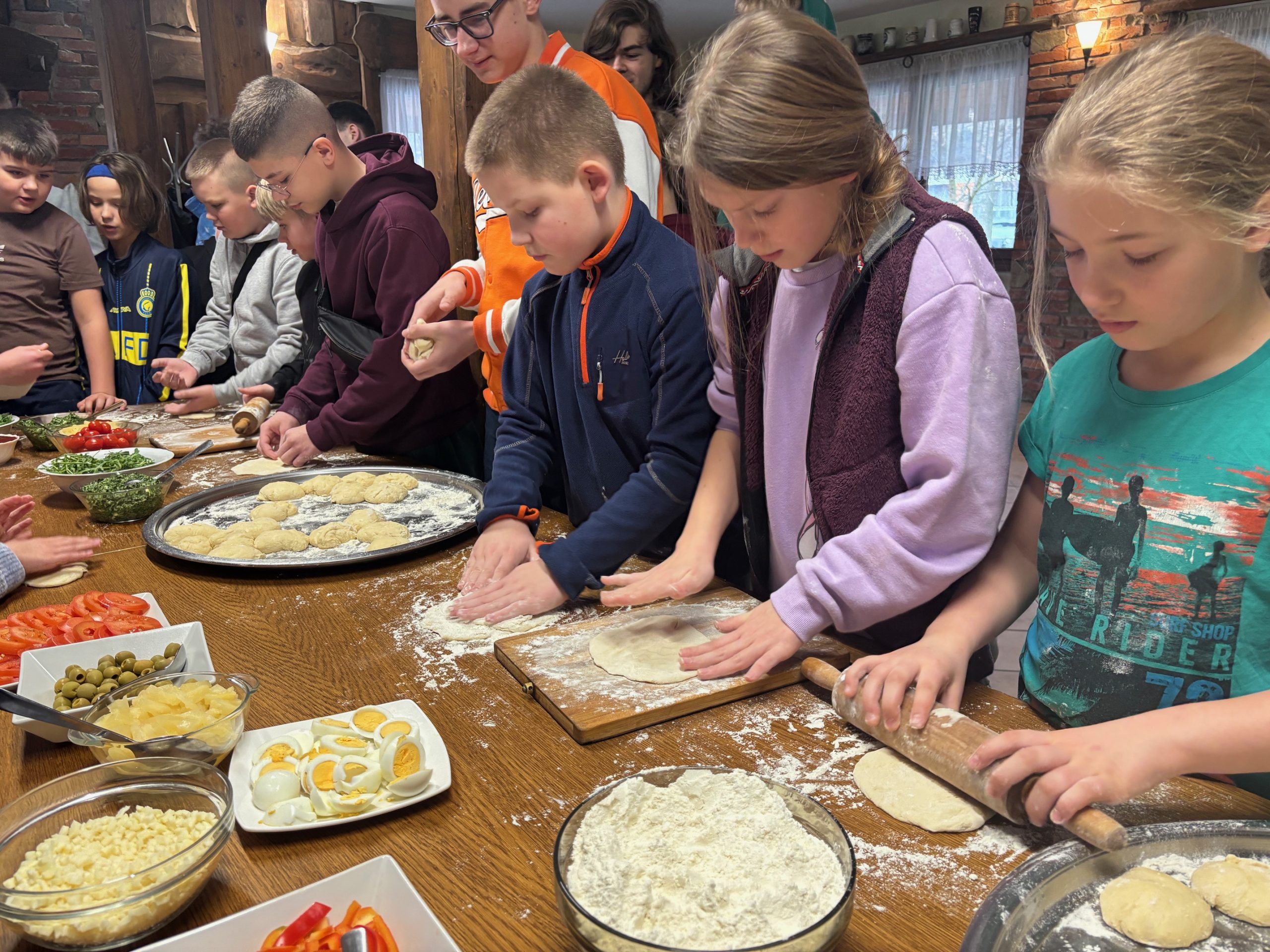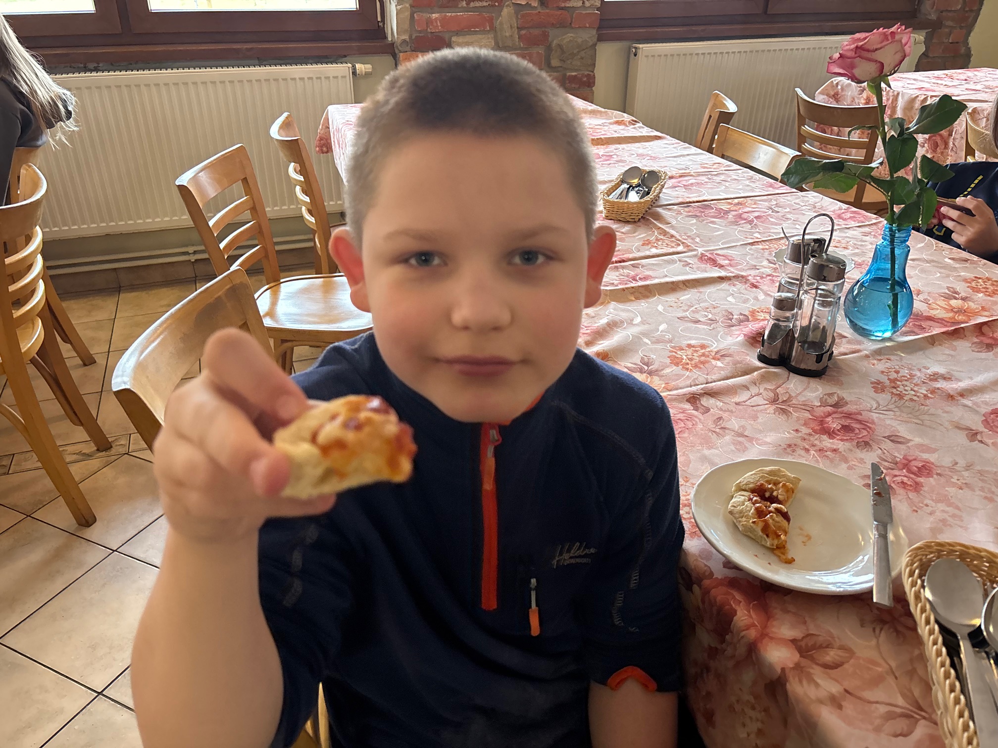Dzień rozpoczęliśmy od pobudki i wspólnego wyjścia na śniadanie, które dało nam siłę na kolejne atrakcje🏋️♀️. Następnie wzięliśmy udział w warsztatach z robienia pizzy – każdy mógł przygotować swoją własną kompozycję smaków🍕. Po krótkiej przerwie ruszyliśmy na Dzień Sportu, pełen gier, zabaw i rywalizacji w duchu fair play🏃♀️➡️🏃♂️. Nie zabrakło też spaceru po okolicy, podczas którego mogliśmy nacieszyć się zimowym krajobrazem🏔️.