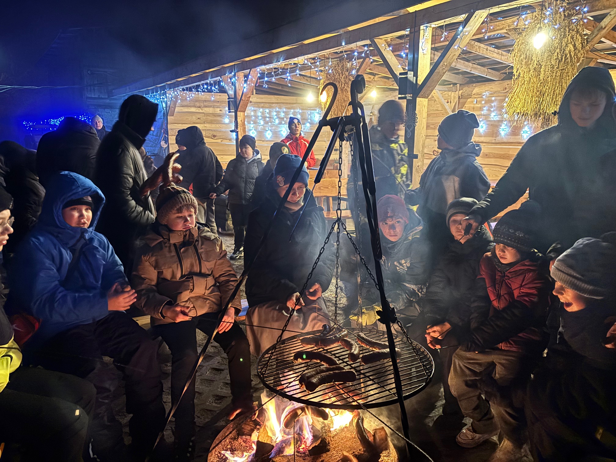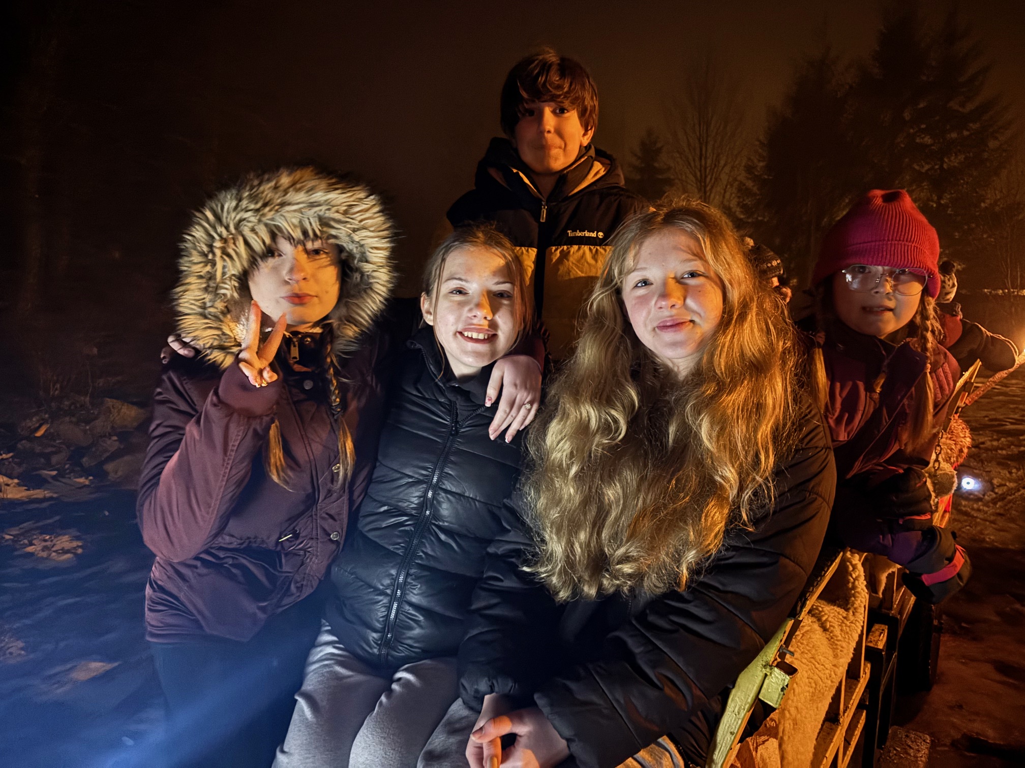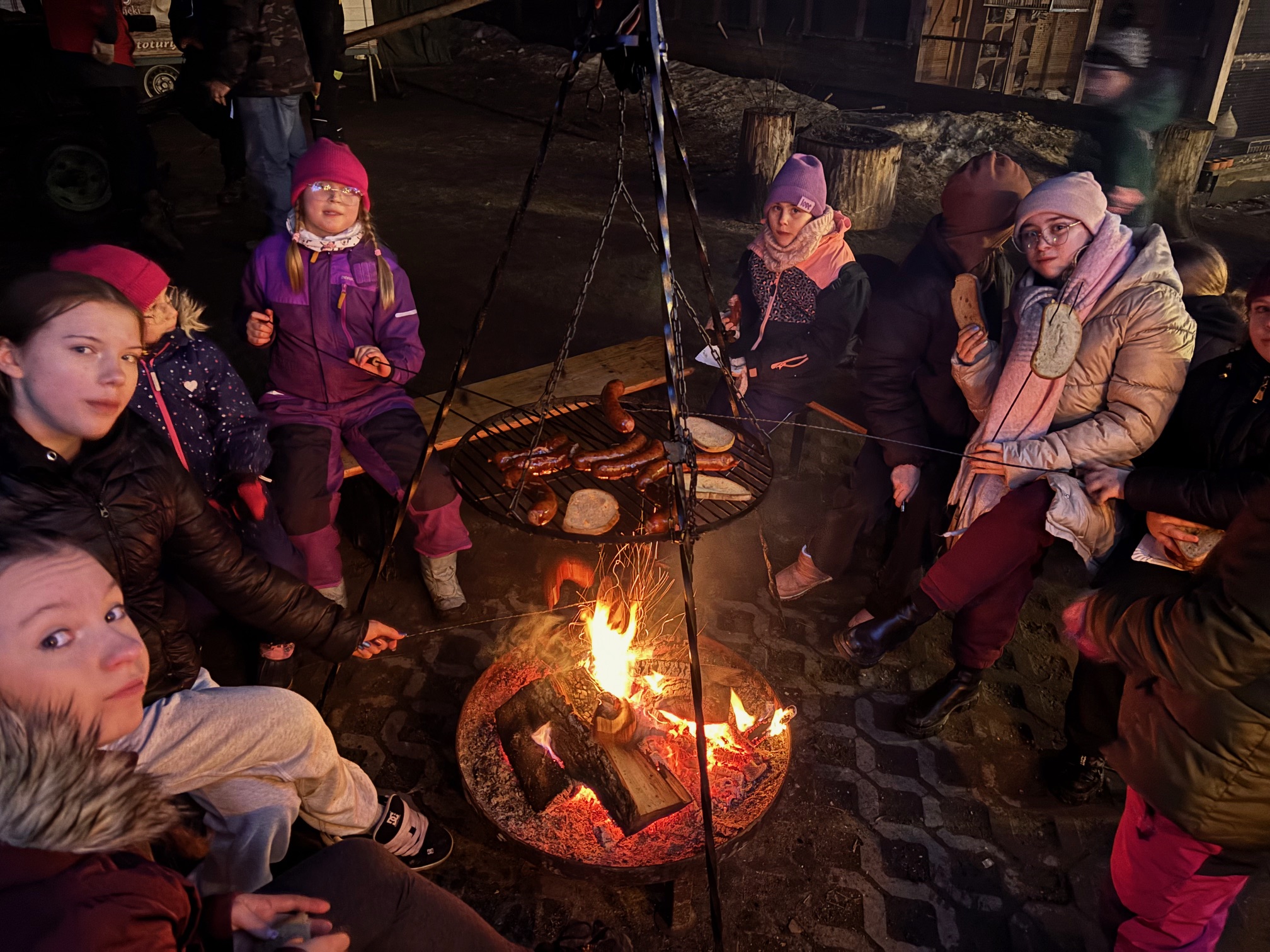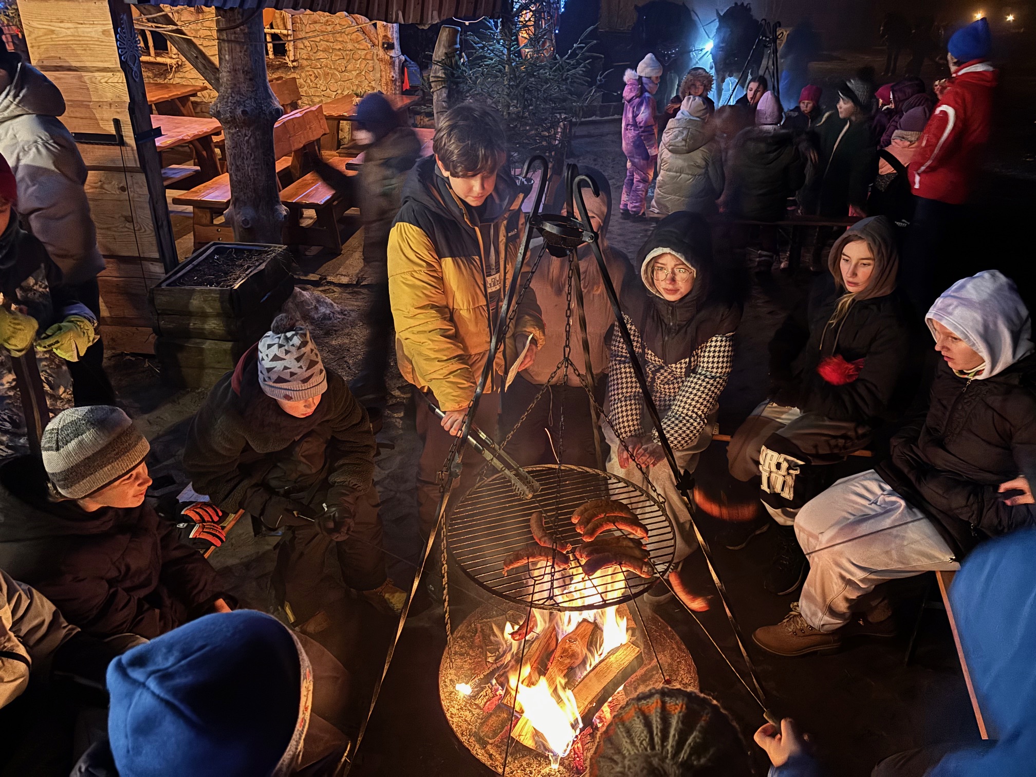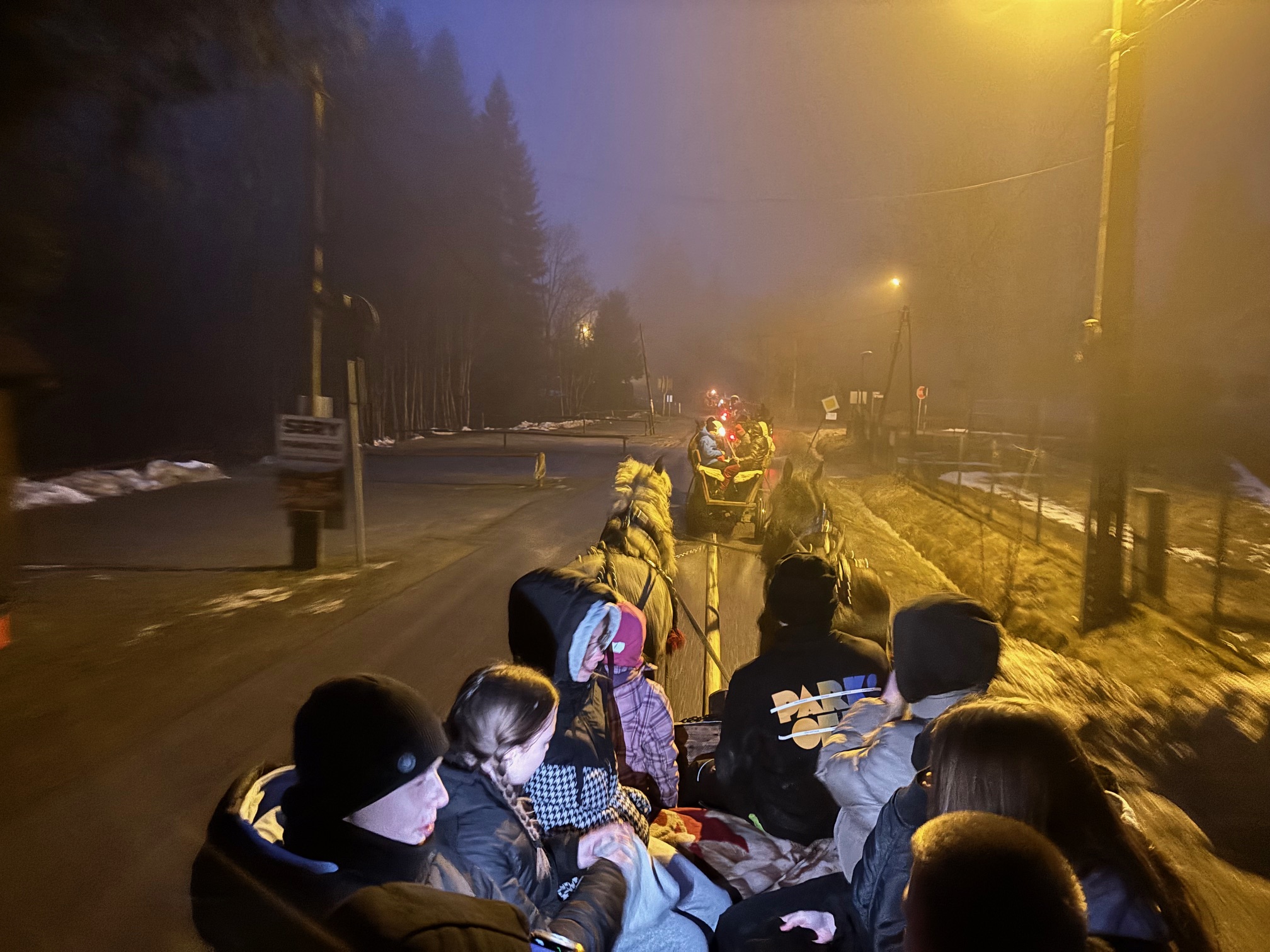 Na zakończenie dnia czekała nas prawdziwa zimowa atrakcja – kulig. Autobusem pojechaliśmy do pobliskiej wioski, gdzie saniami ciągniętymi przez konie wyruszyliśmy w malowniczą trasę🏇. Wieczór zwieńczyło ognisko z kiełbaskami, które stworzyło wyjątkową, ciepłą atmosferę.
