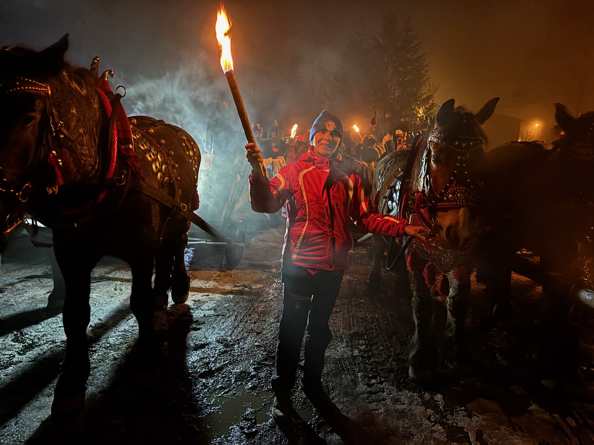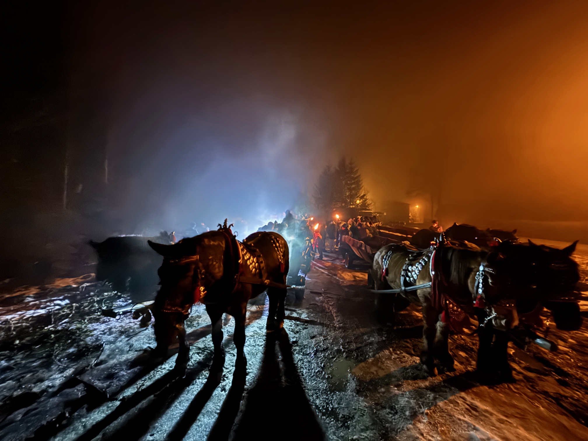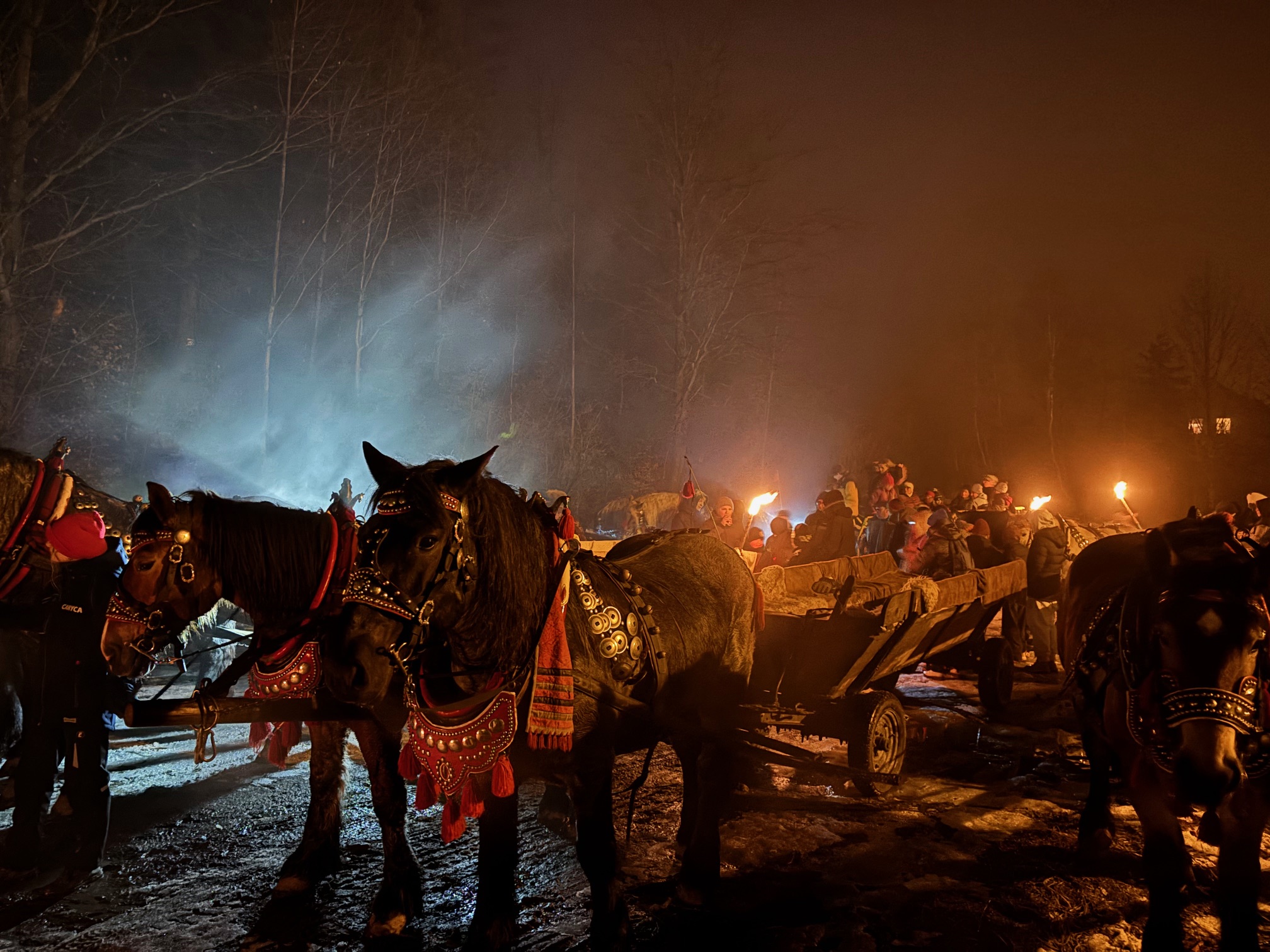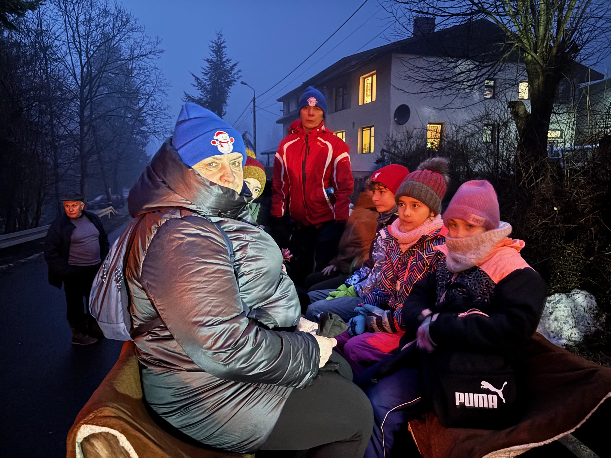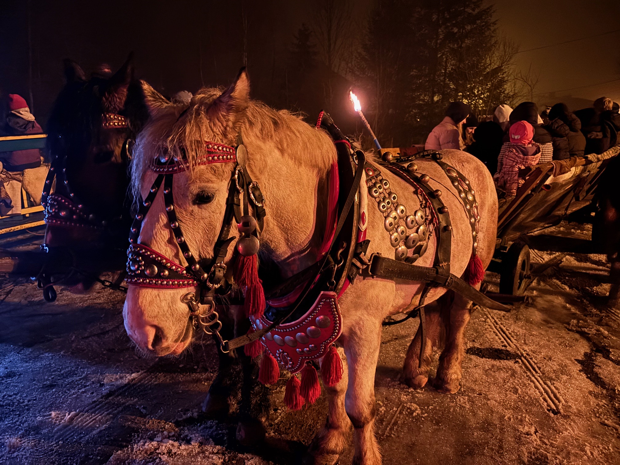 Na zakończenie dnia czekała nas prawdziwa zimowa atrakcja – kulig. Autobusem pojechaliśmy do pobliskiej wioski, gdzie saniami ciągniętymi przez konie wyruszyliśmy w malowniczą trasę🏇. Wieczór zwieńczyło ognisko z kiełbaskami, które stworzyło wyjątkową, ciepłą atmosferę.