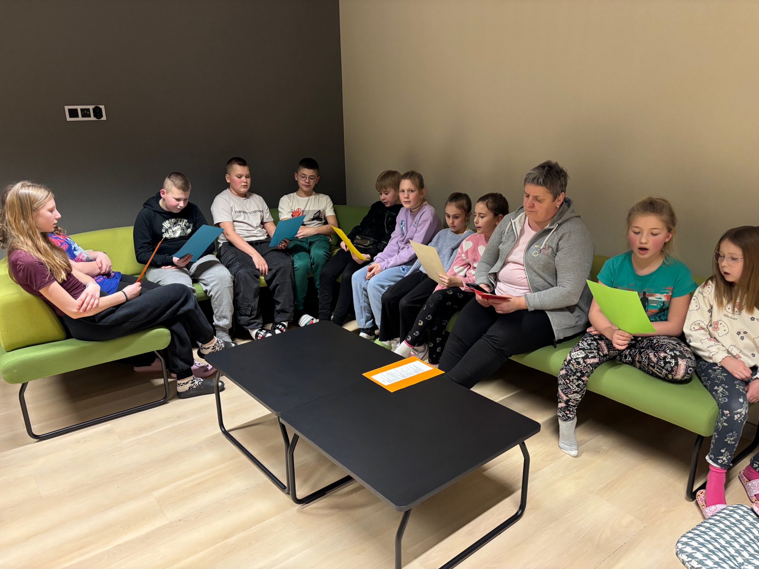 Po powrocie odbyły się jeszcze krótkie warsztaty w grupach, podczas których uczyliśmy się hymnu tegorocznego obozu🤩.