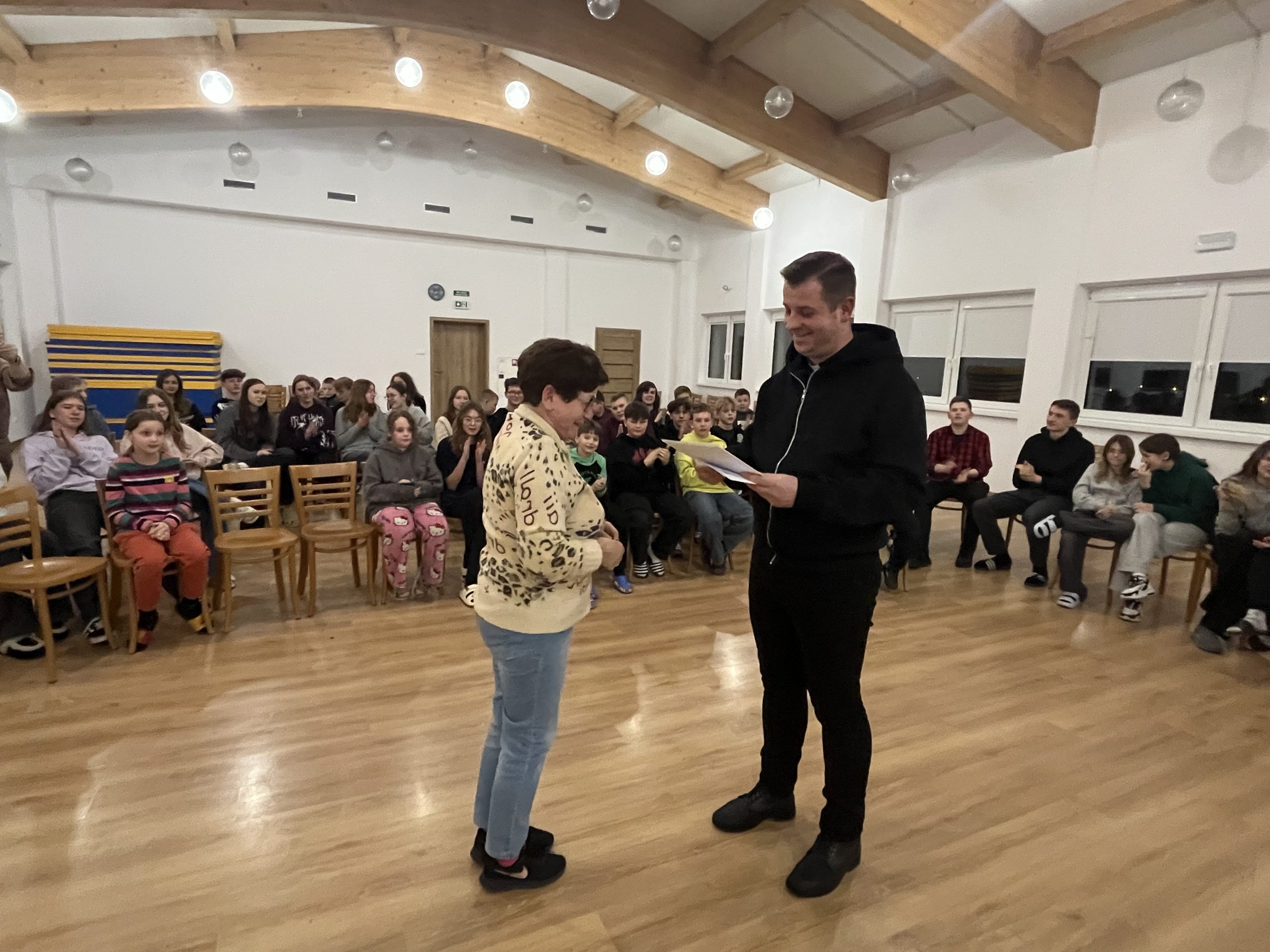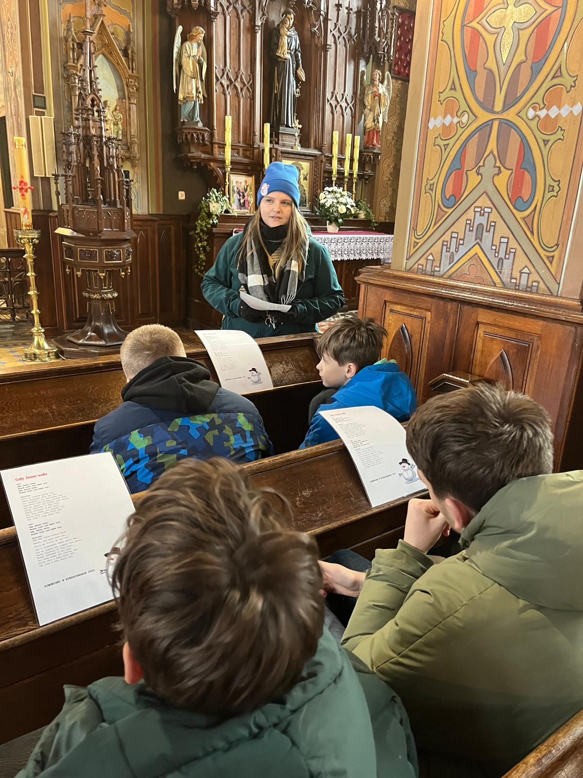 Kolejny dzień zimowiska upływa pod znakiem litery ,,w”- jak wiara z obozowego hasła ,,Na zawsze”.Duch święty nad nami czuwa, bo większą część dnia spędzaliśmy w miejscach, w których wiara oraz zawierzenie Bogu i Maryi były szczególnie ważne. Klasztor sióstr nazaretek w Komańczy okazał się jednym z czterech miejsc internowania kardynała Stefana Wyszyńskiego.Mial być miejscem izolacji, okazal się zaś tym, w którym prymas dochodził do zdrowia i stworzył ,,Zapiski więzienne” W cerkwi greckokatolickiej wysłuchaliśmy historii o tym, co łączy wyznania rzymsko – i greckokatolickie, otrzymaliśmy piękną lekcję ekumenizmu. Po południu odbyliśmy konną przejażdżkę po miejscowości Smolnik. Okazało się, że komendy wiśta, hejta, nazad nie są czytalne dla większości z nas. (i zabiło ćwieka niejednemu z nas):) Zagroda Chryszczata przygotowała dla nas ognisko i pyszne kiełbasy. Wieczorem zaś spotkaliśmy się z pięcioma agentami, którzy wciągnęli nas w emocjonującą grę Kahoot, sprawdzającą poziom naszej spostrzegawczości, kreatywności i współpracy w grupie. Emocjonujący dzień czas zamknąć. Jutro atrakcji ciąg dalszy.