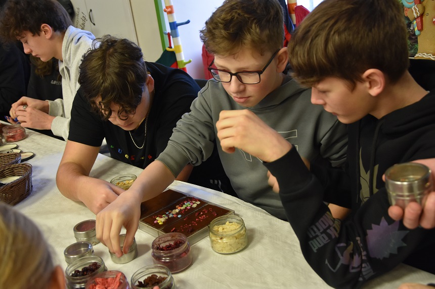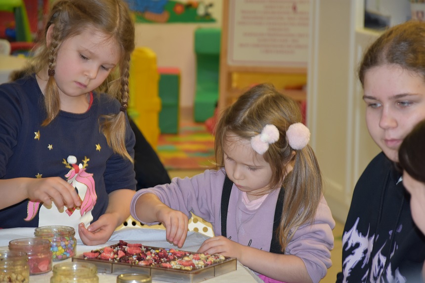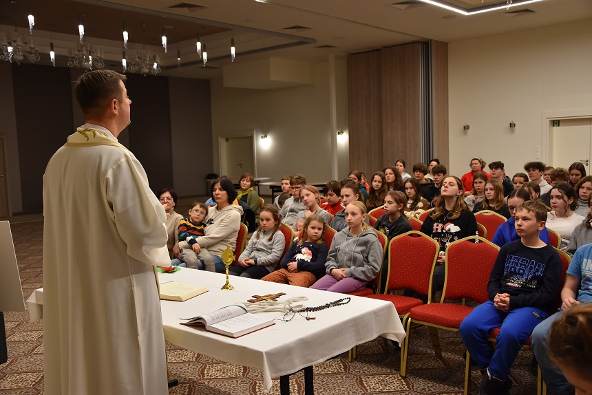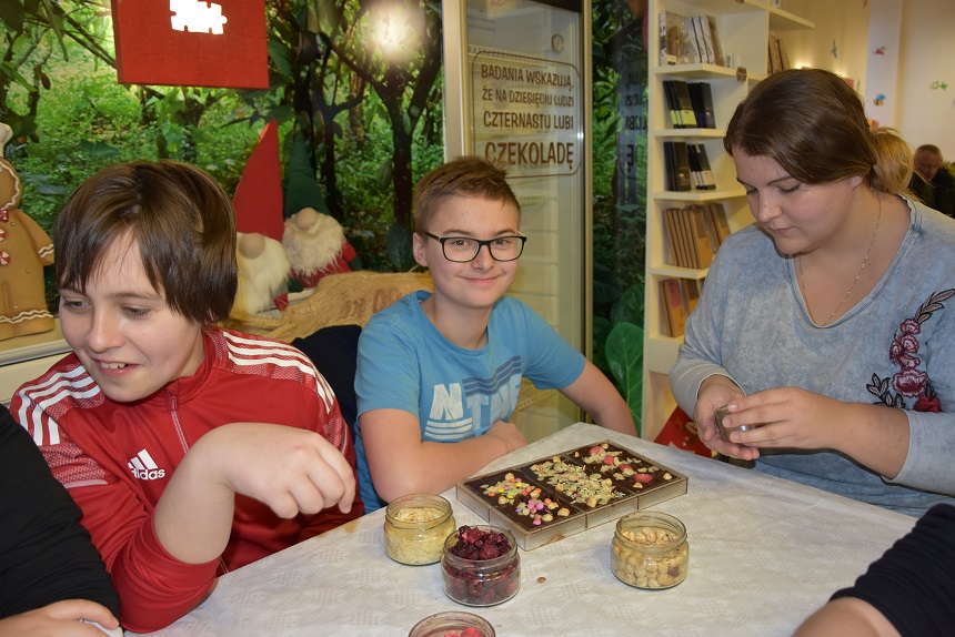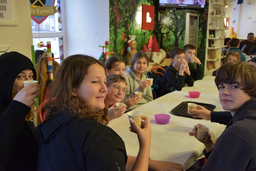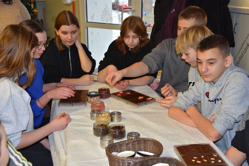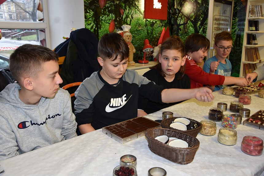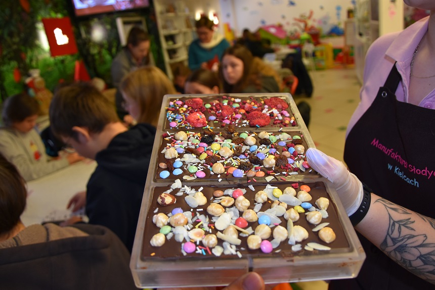 Wszystko co dobre, szybko się kończy. Ostatni dzień zimowiska był wypełniony wieloma atrakcjami od rana do późnego wieczora. Po pysznym śniadaniu wyruszyliśmy do Kiec, aby zobaczyć najważniejsze miejsca w historii tego miasta. Z punktu widokowego podziwialiśmy panoramę okolicy, a potem zapoznaliśmy się ze sztuką sakralną, o której opowiadał nam przewodnik podczas zwiedzania katedry. Kolejnym punktem programu były „słodkie” warsztaty. Dowiedzieliśmy się o tym, z czego powstaje czekolada i jakie ma właściwości zdrowotne. Po degustacji, wszyscy mieli zadowolone minki. Na koniec zajęć każdy samodzielnie wykonał tabliczkę czekolady. Z dobrymi humorami wróciliśmy do ośrodka. Po krótkim odpoczynku i obiadokolacji wyruszyliśmy do kina w Kielcach. Część z nas wybrała się na ” Akademię Pana Kleksa”, pozostali obejrzeli inny film – ” Cudownego chłopca”. Pełni wrażeń, wróciliśmy do Świętokrzyskiej Polany, gdzie odbyła się msza św. Ksiądz Marcin, podczas kazania nawiązał do nawrócenia św.Pawła oraz do św.Franciszka, który zrezygnował ze swojego dostatniego życia, stając się ubogim, ale szczęśliwym. Ostatni wieczór zachęcił nas do spędzenia wspólnego czasu z przyjaciółmi, koleżankami i kolegami. Jutro pożegnamy się na krótko, bo do letnich wakacji. Pozostaną wspomnienia i oczekiwanie na kolejny wyjazd.